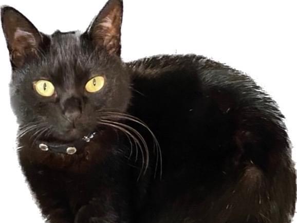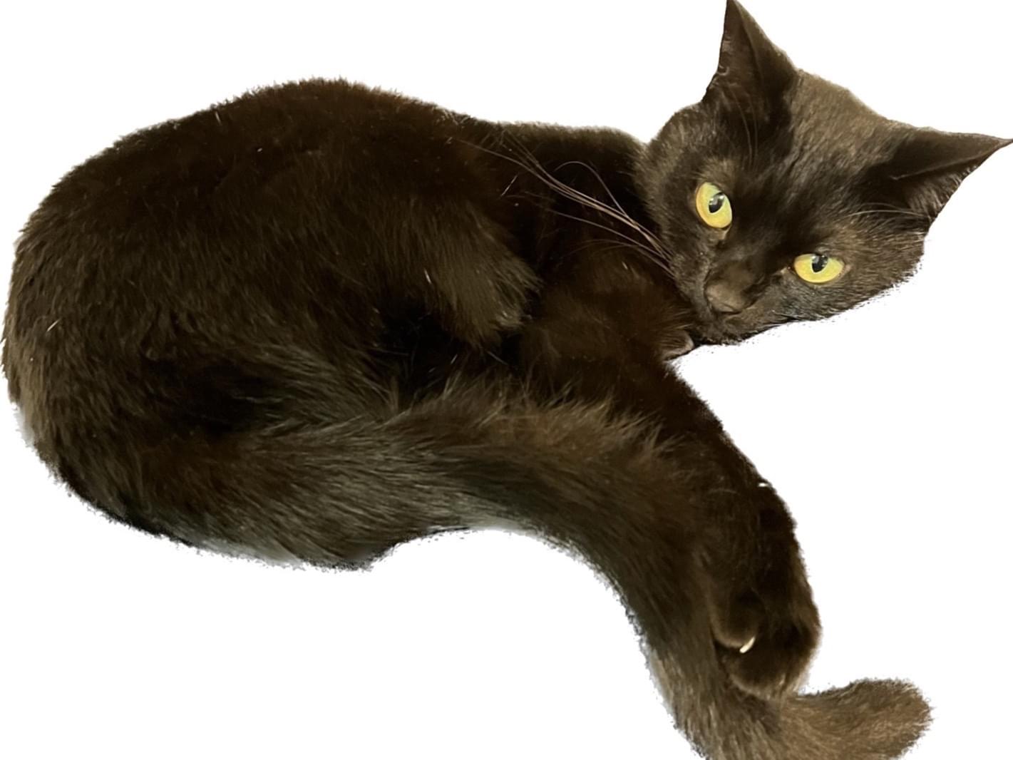 青のラインストーンのついたキラキラした首輪つけてます。左後ろ足に白い毛が横線にあります。