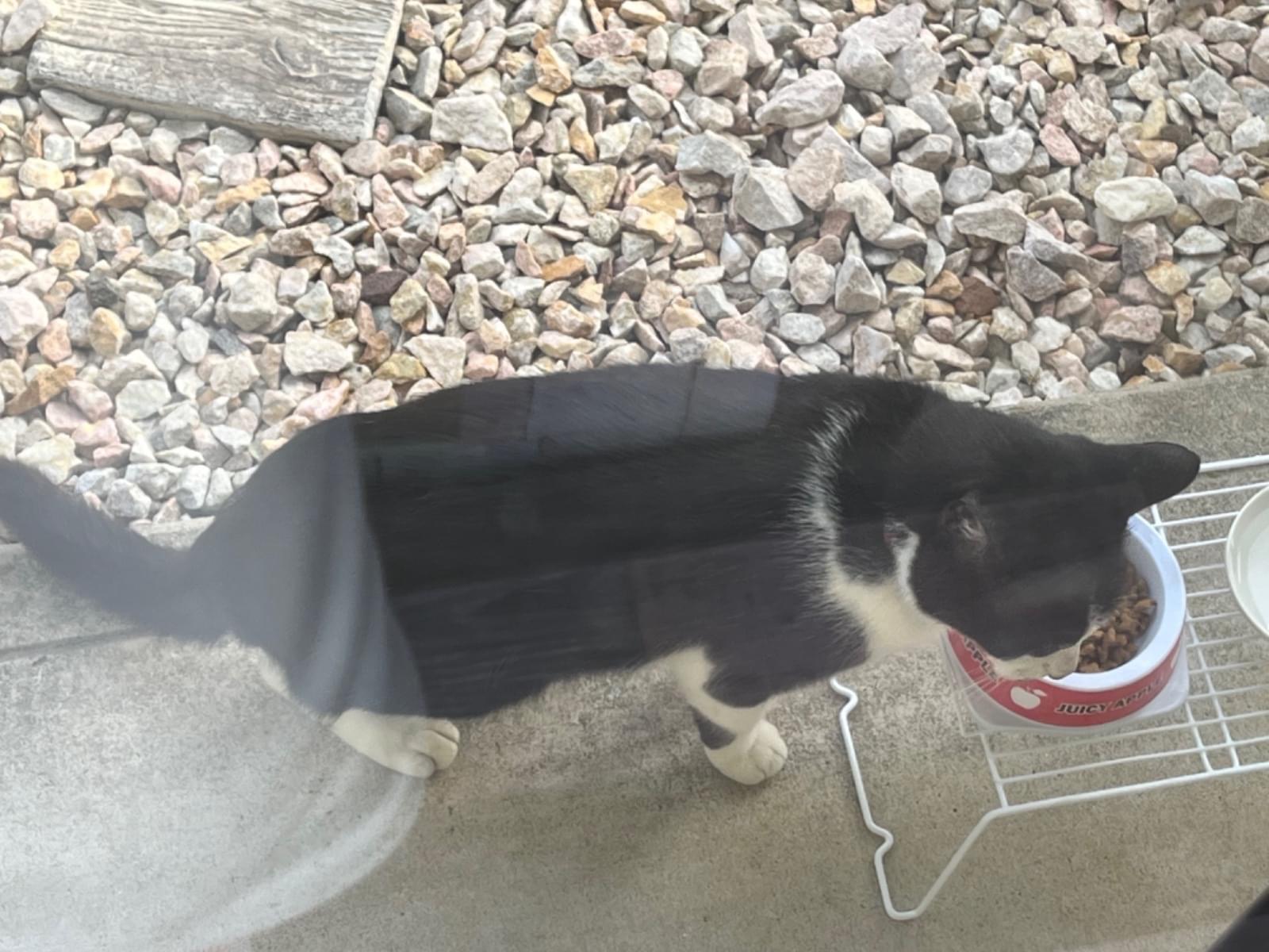 白黒 ハチワレ 猫 首輪してます。 鼻黒 鼻横 ホクロ