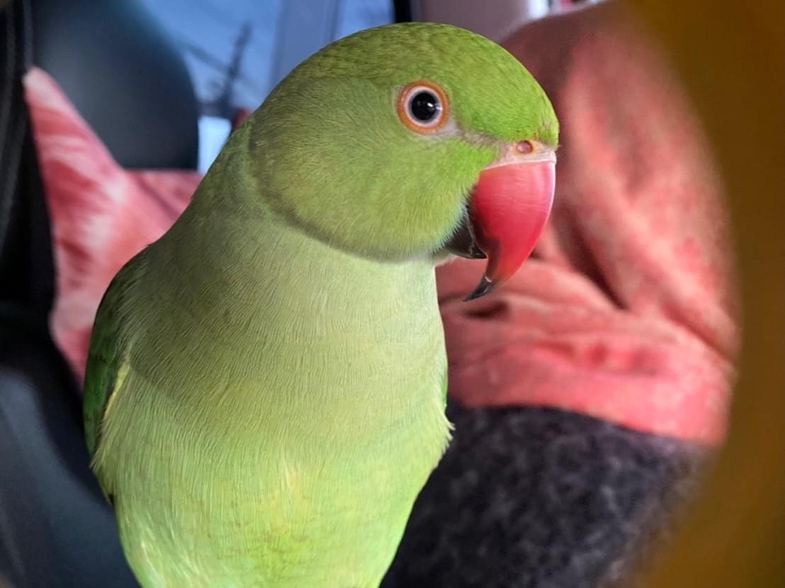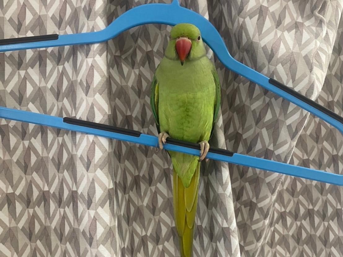 ワカケホンセイインコを探しています。大きさは約30〜40cmでくちばしが赤いです。右足に輪っかがあります。