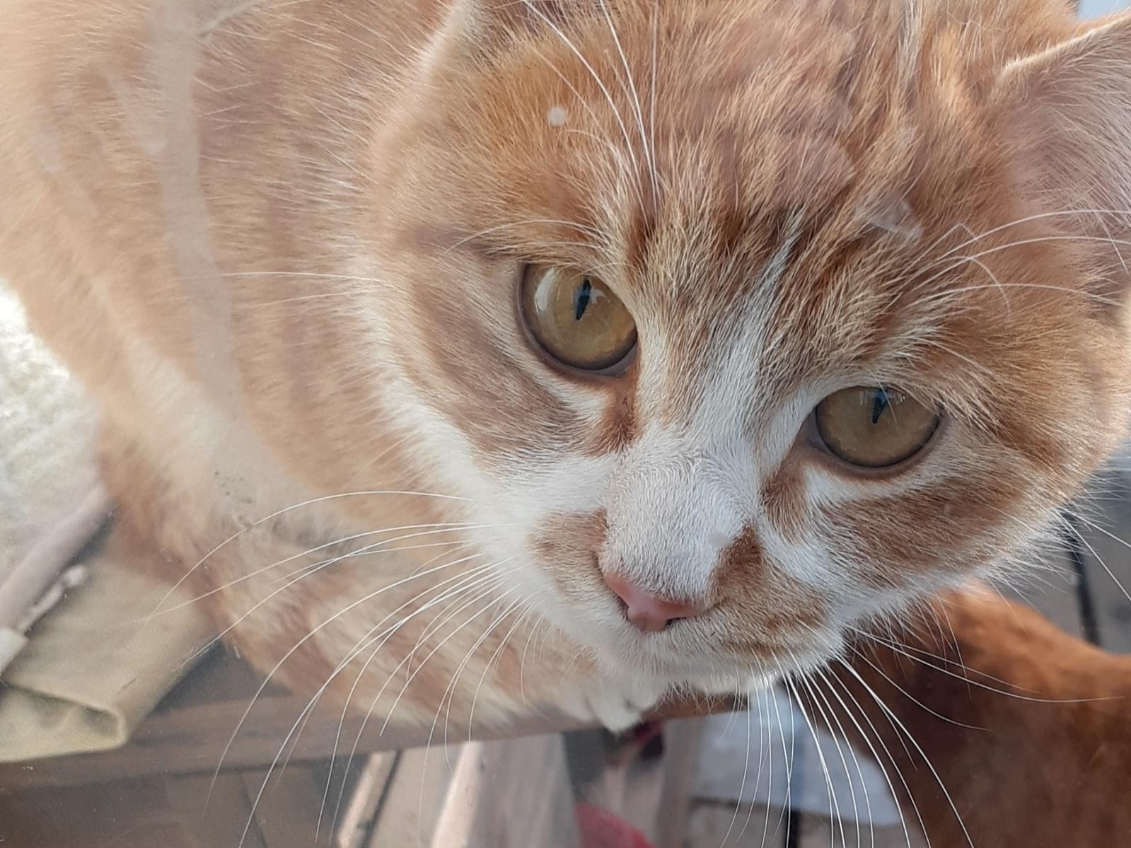 茶白ハチワレ猫/男の子(去勢済)を探しています。鼻の左右の模様が特徴です。