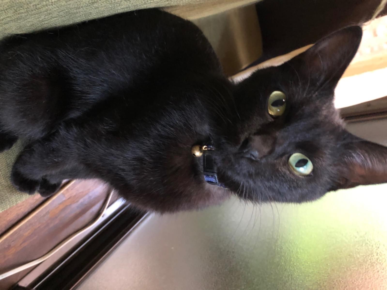 ダイソーのピンク系シマシマ赤い鈴付きの首輪をしています。尻尾が短く、3年前に保護して避妊済みのメスの黒猫3歳です。7/11から帰って来ず、近所を探し回っています。名前はゴウランで、ゴウとも呼んでいます。