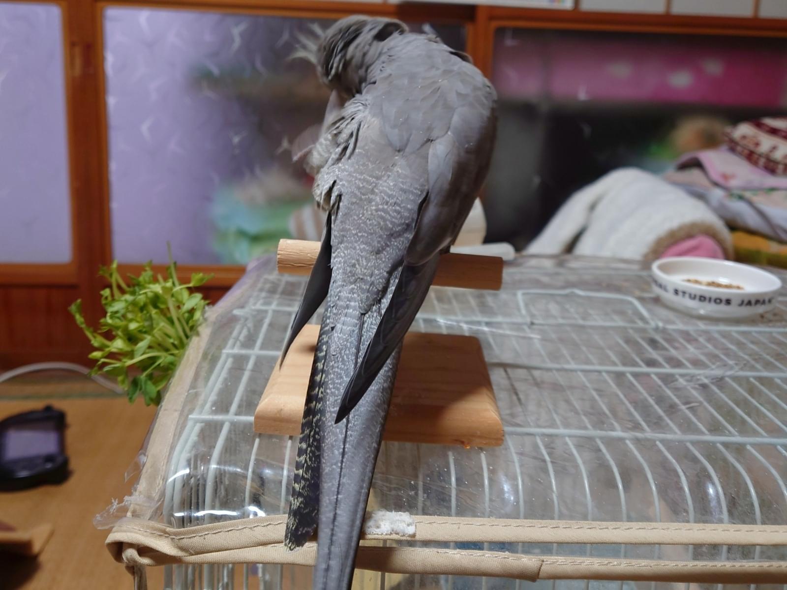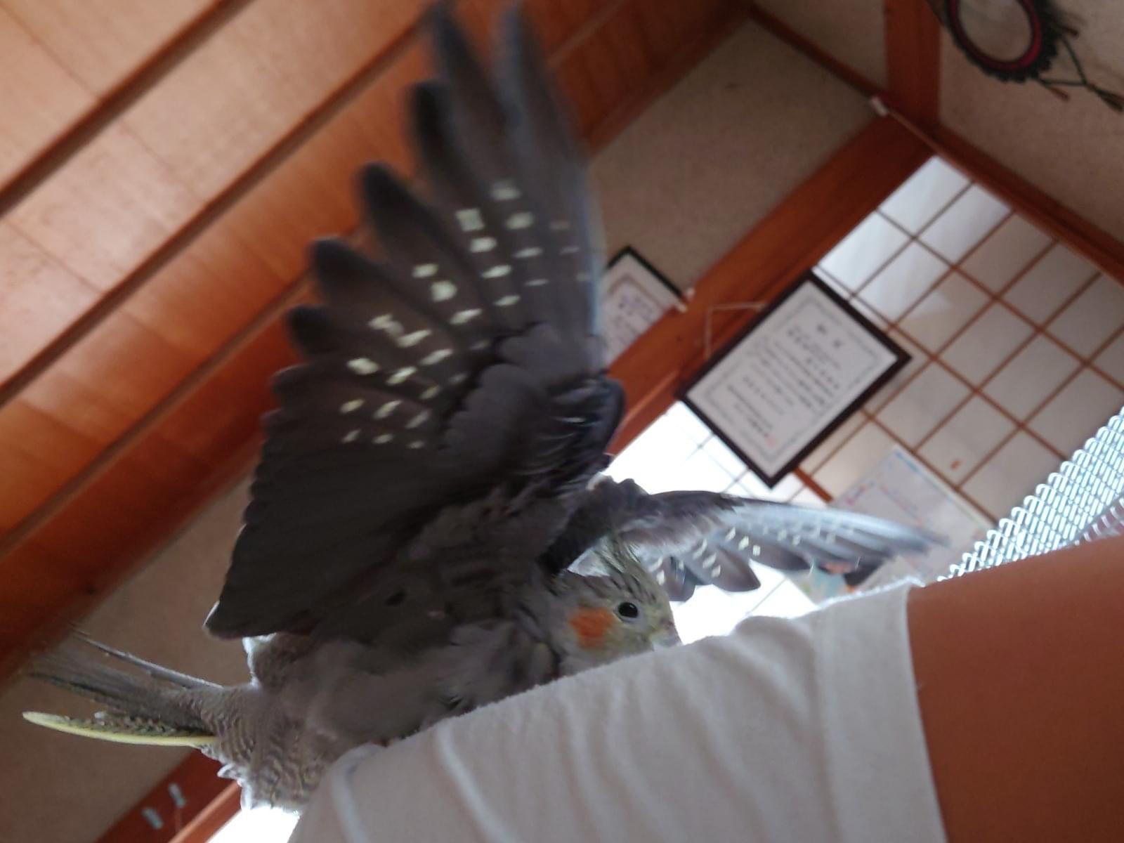 性格はおっとりしていて逃げたときも高い枝に3時間止まり羽繕いしていました。その後降りてこようとしたときに他の鳥に狙われてパニックで逃げて見失ってしまいました。