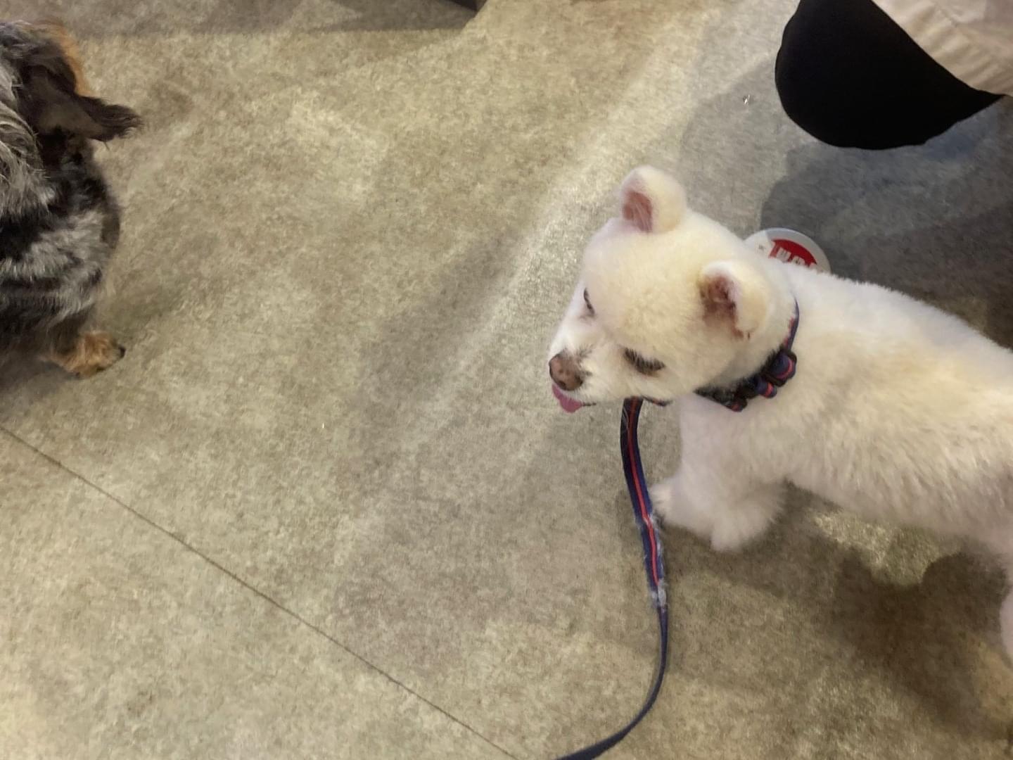 白いポメラニアン系。首輪なく、オシメして、ひとりで炎天下の道を歩いていました。家から脱走したばかりと思いました。春の小川通りのペットショップone dogで保護しています。https://www.instagram.com/one.dog.1/
