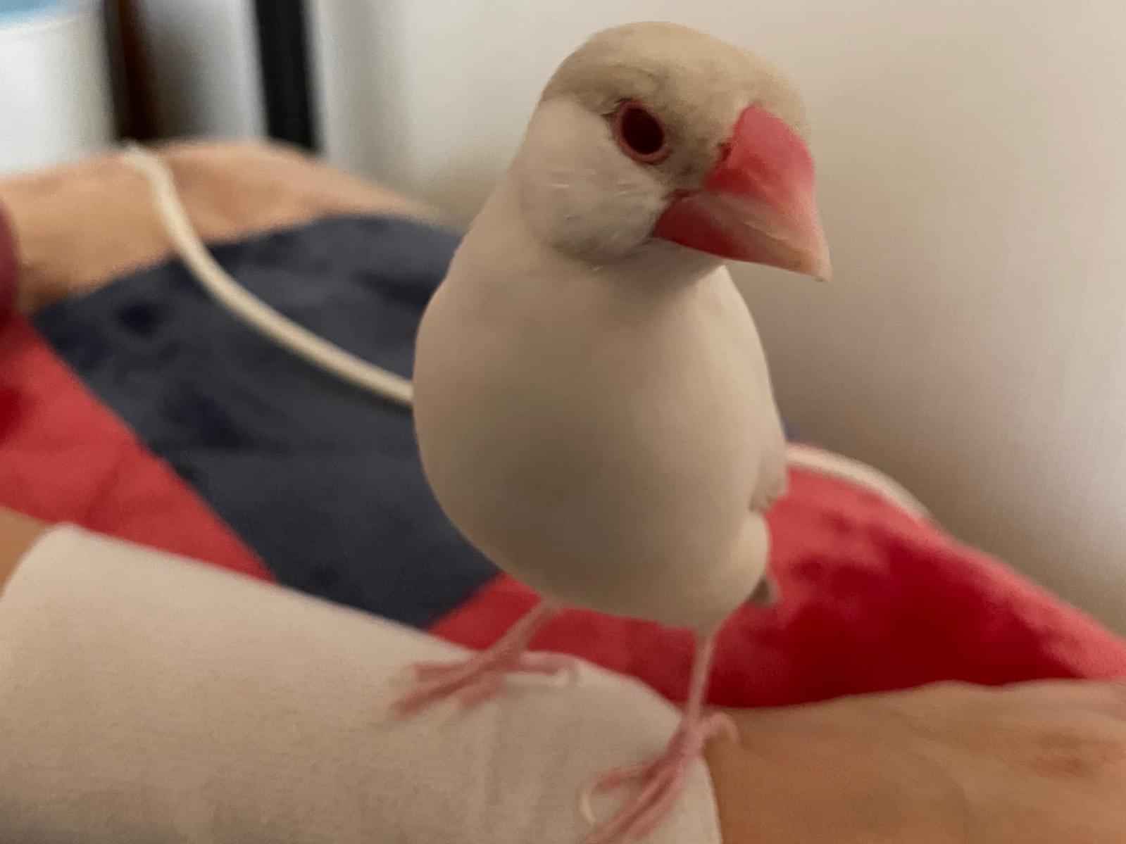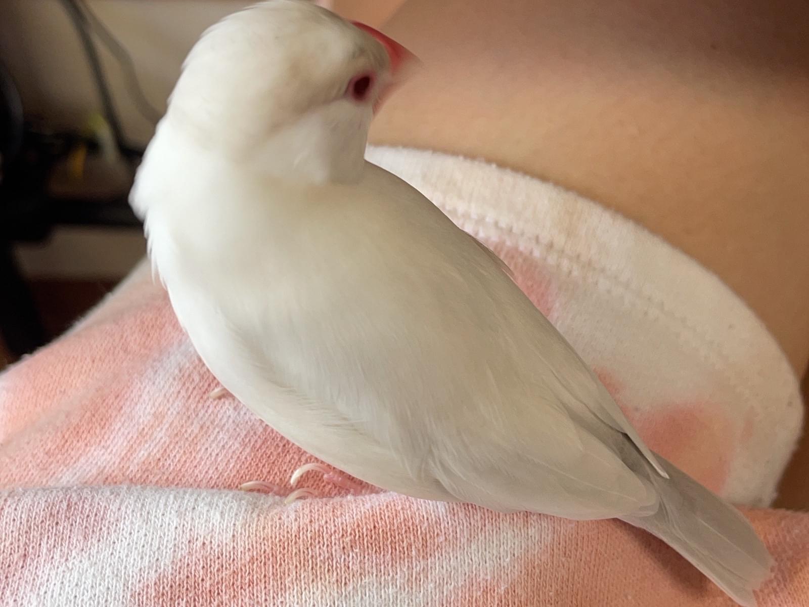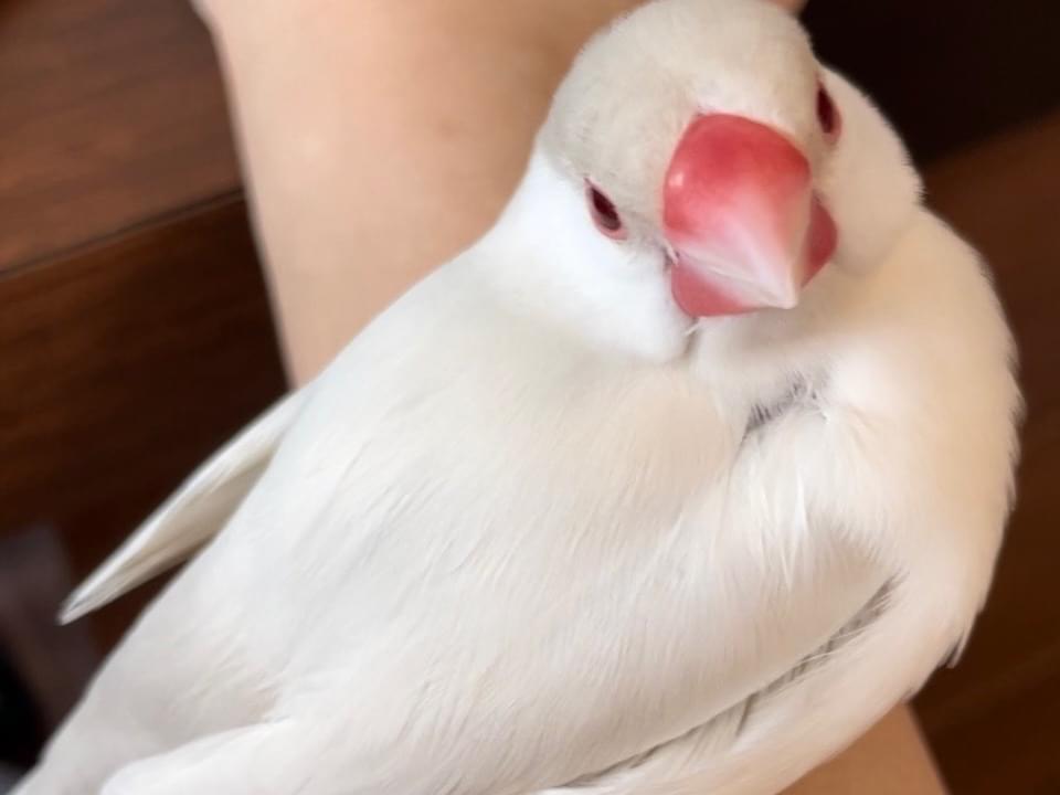 ・全体的に白い、頭と尾っぽがシルバーグレー、瞳とくちばしは赤
