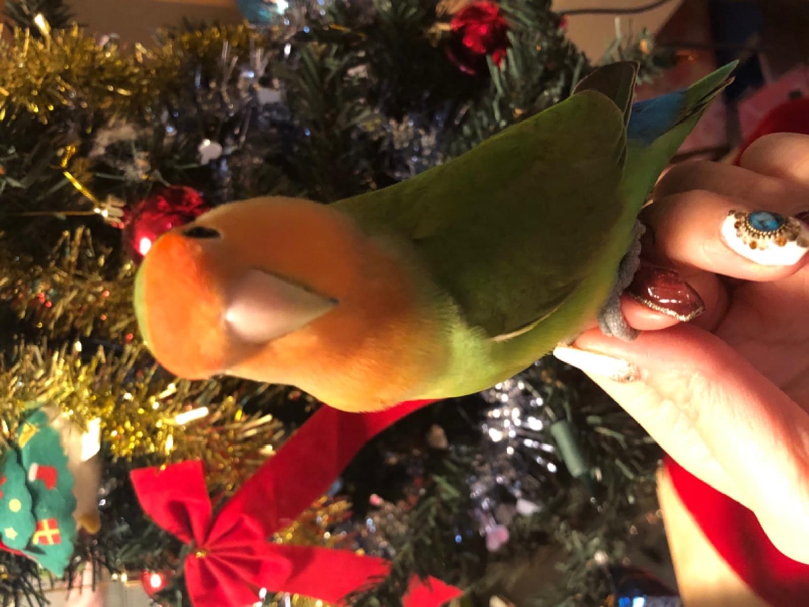 顔が赤くて体が緑のノーマルコザクラインコが迷子になってしまいました。