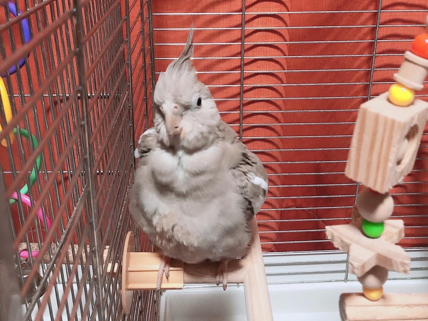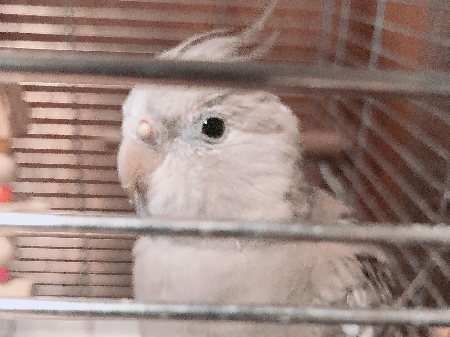 オカメインコ特有のチークパッチのないホワイトとグレーのカラーです。