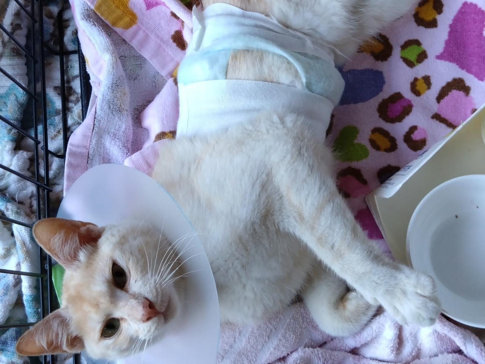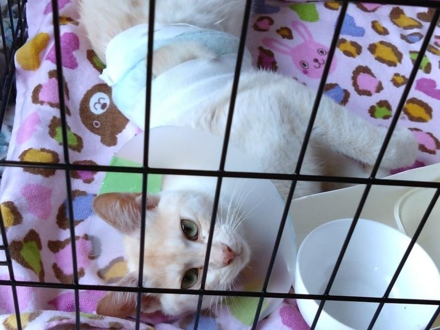 背中に怪我をしていてちょっとひどかったので一時的に保護しました。最低限の治療はしてあります。