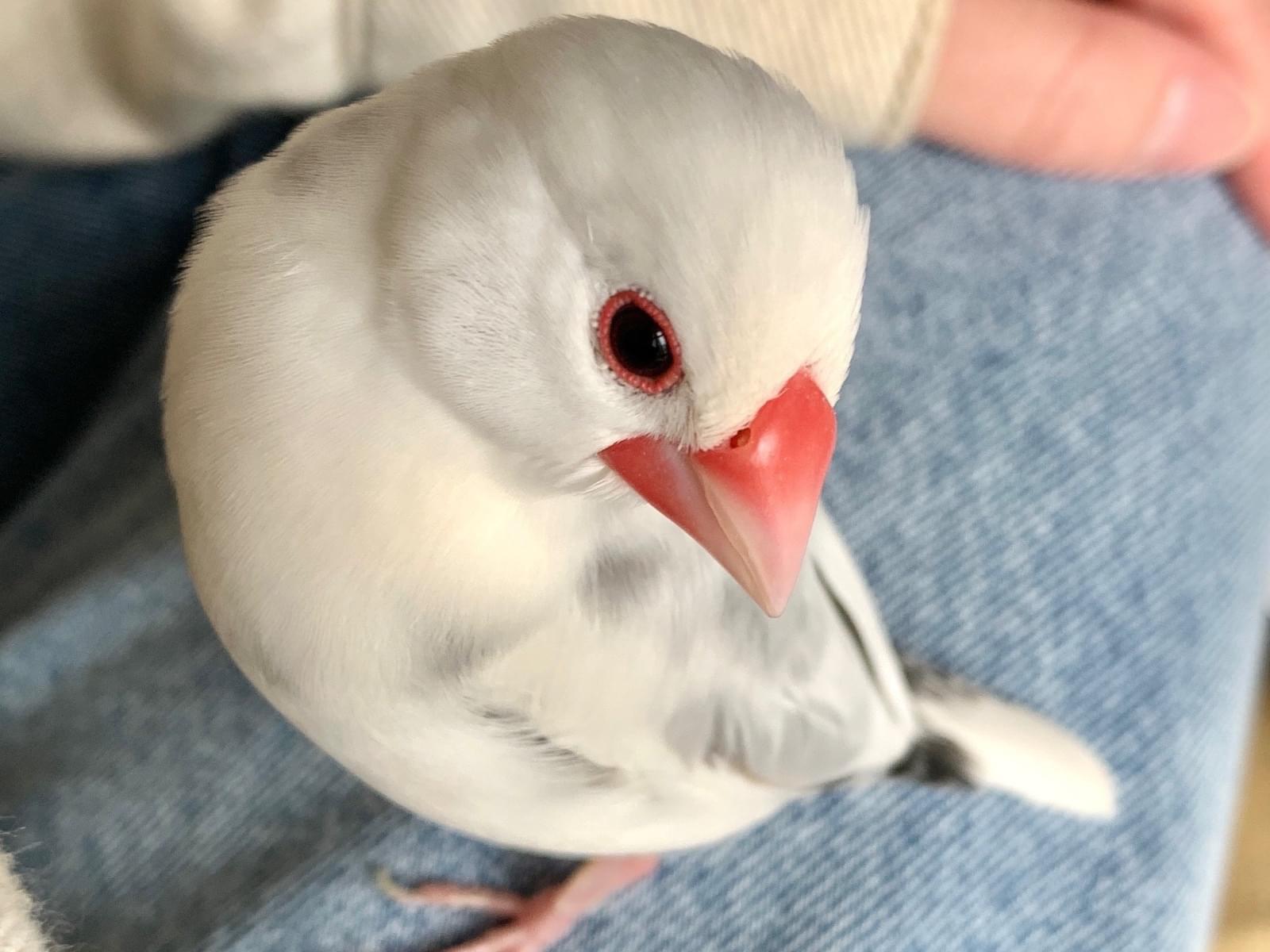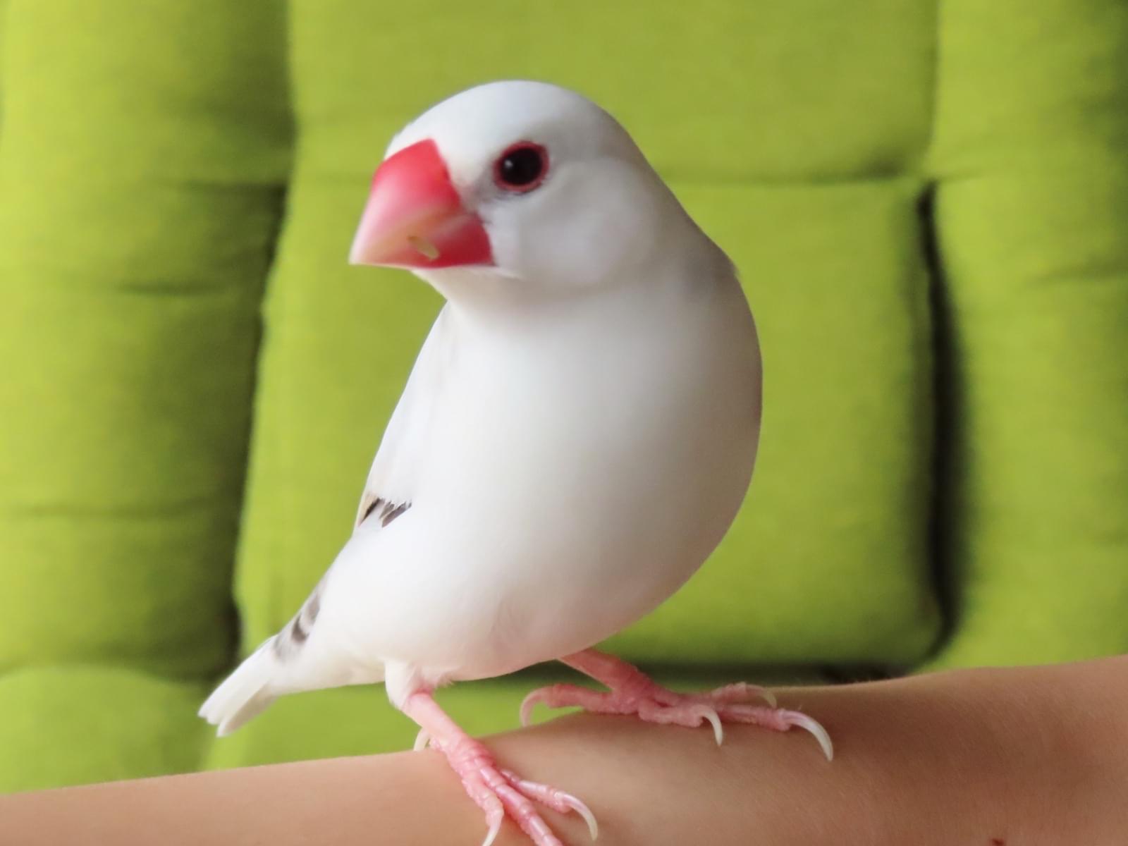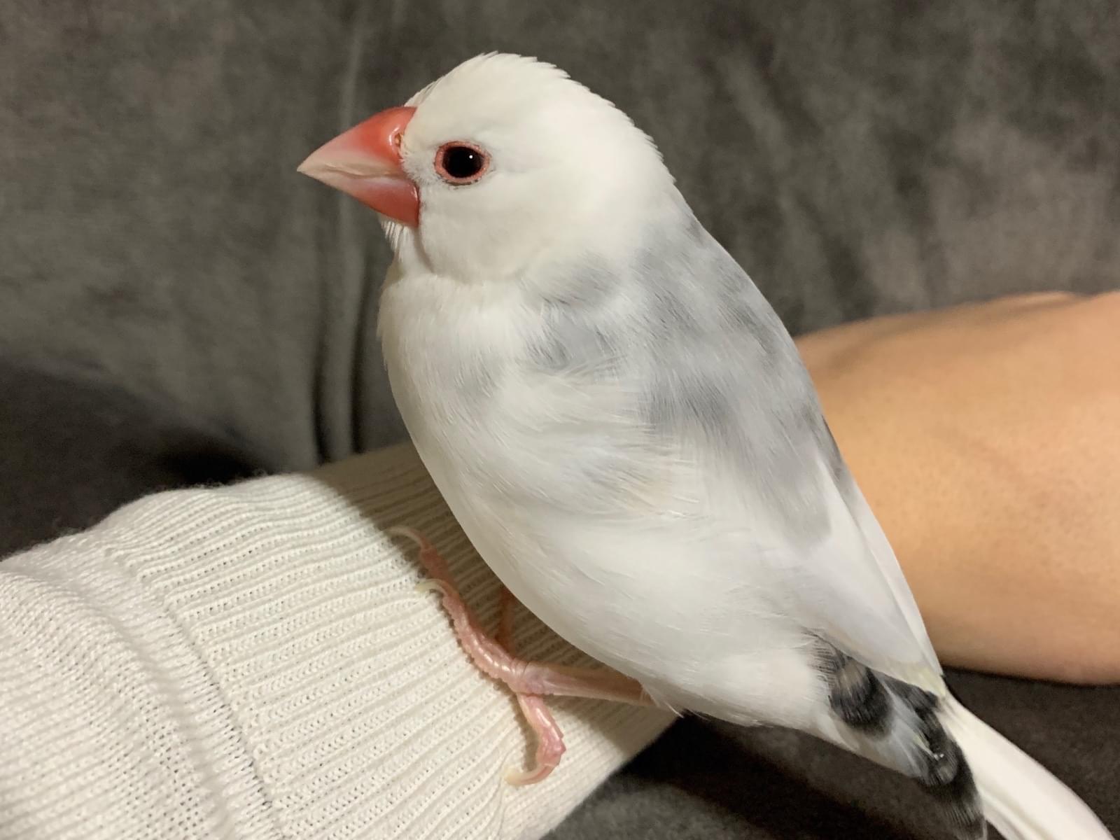 白い文鳥を探しています。背中はグレーの羽も生えています。