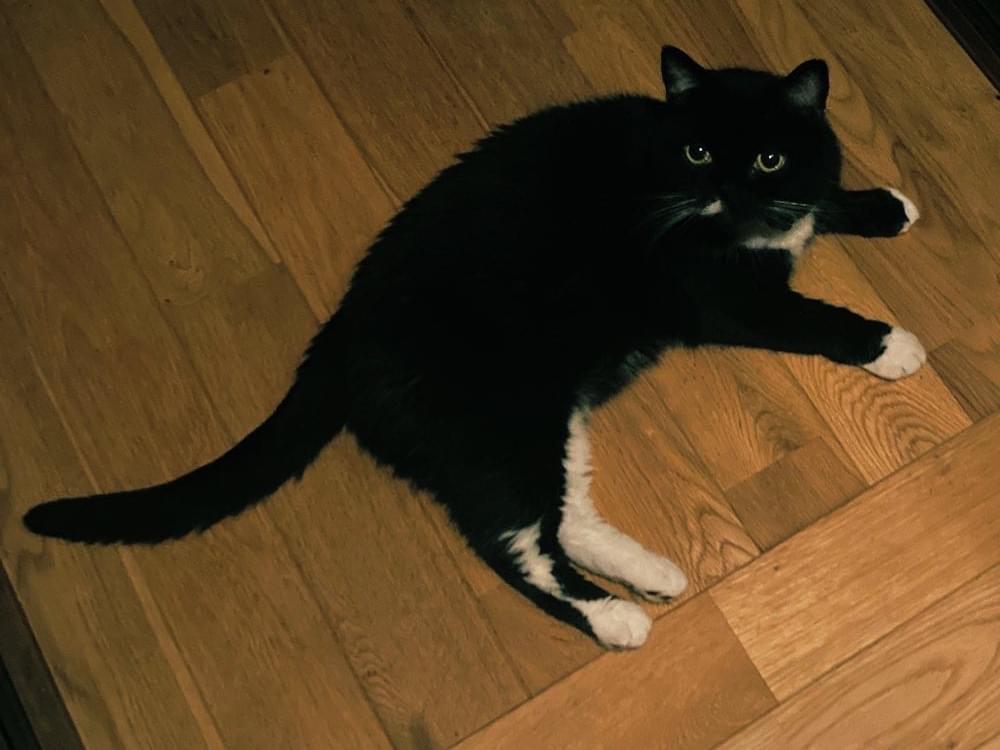 毛色:黒、首からお腹、足先が白