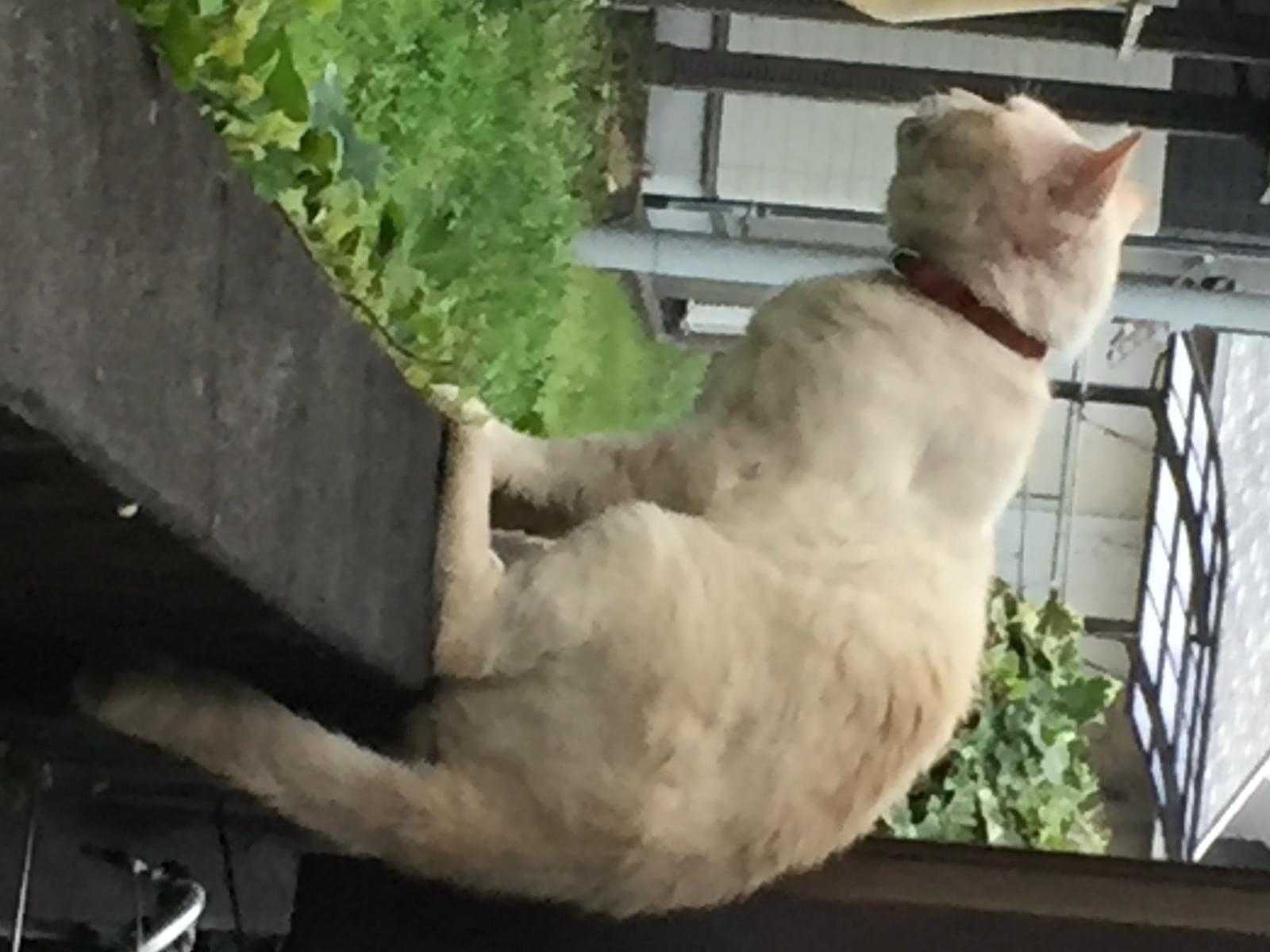 全身ベージュかクリーム色、尻尾だけ薄いトラ模様あり。