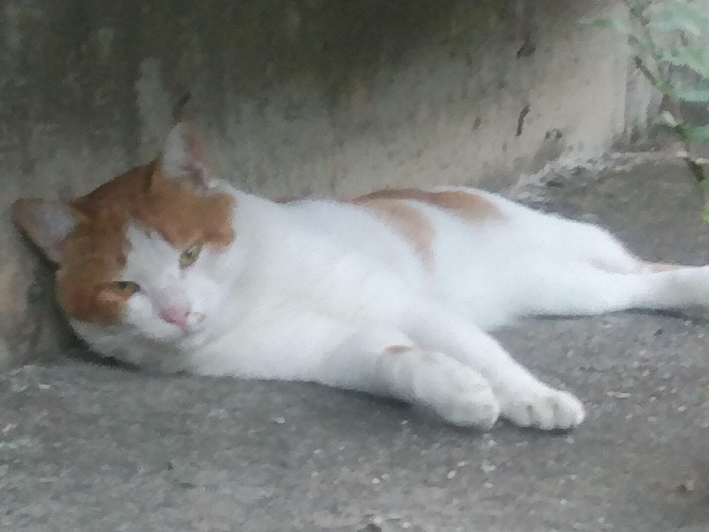 茶白のトラ猫。しっぽは、長い。性別不明。