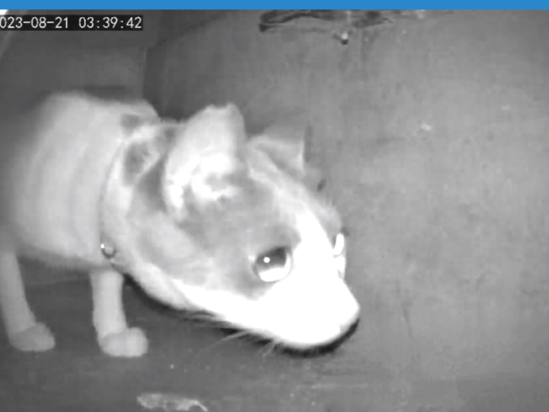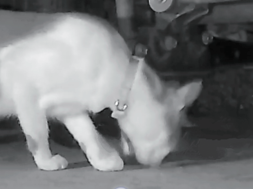首輪をしたキジ白かトラ白か三毛猫 右耳がさくらねこカットのような形
