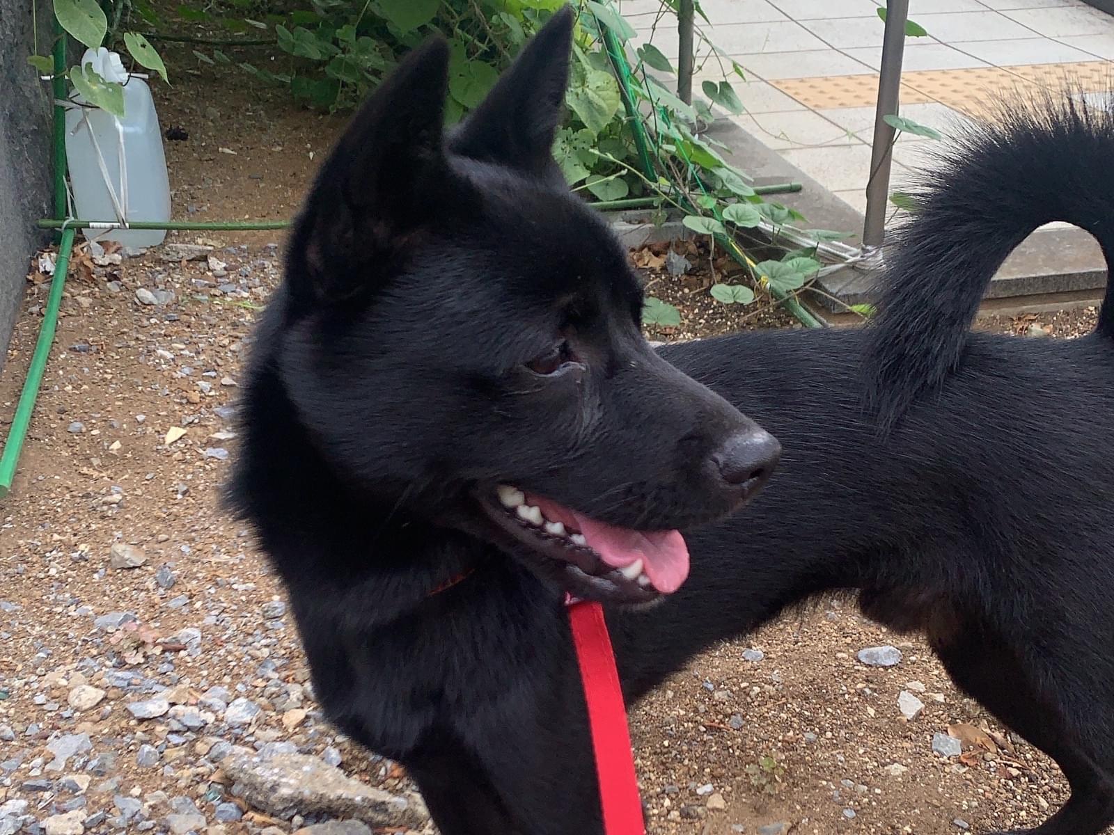 中型の細く黒い犬を保護しています。胸の所が少し白いです。とても人懐っこくお座りもできる一才程の男の子、去勢はされていません。首輪もしていませんでした。