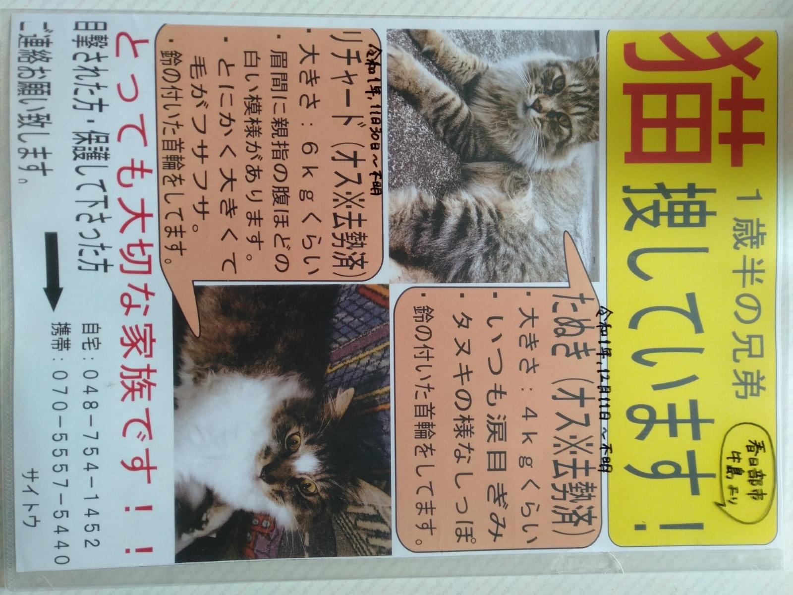 たぬきが居なくなって2年が経ちますが、私達家族はたぬきを諦めたくない半面、近所でも猫が同時期に居なくなった事から盗難を疑って『別の家族に可愛がられて居るなら・・・』と諦めざるを得ない状態です。