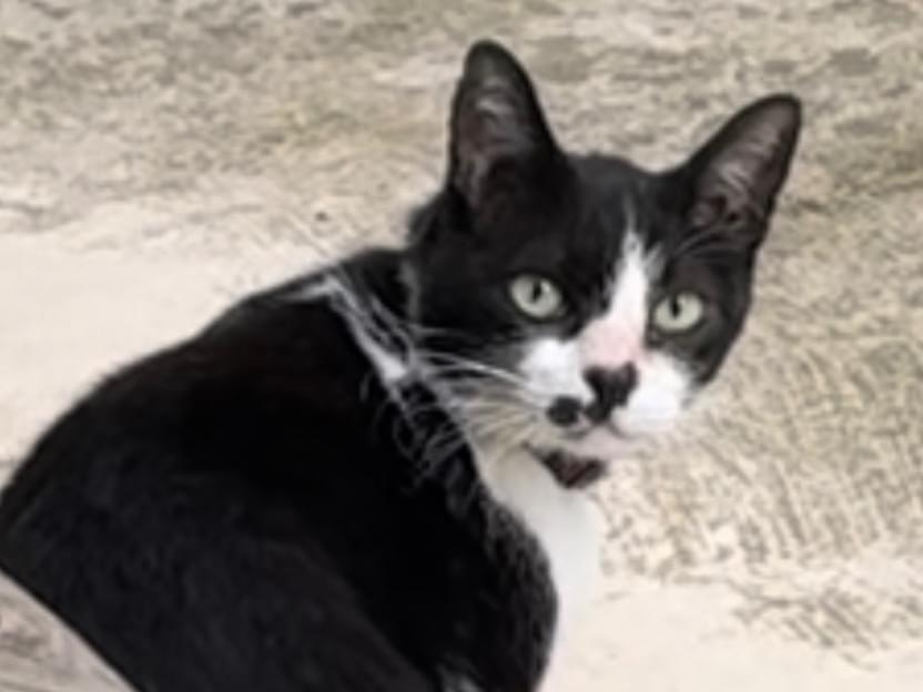 白黒 ハチワレ 鼻黒 首輪してましたが 今は取れてます。