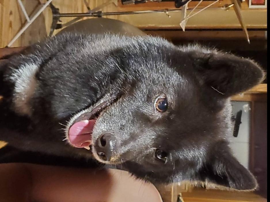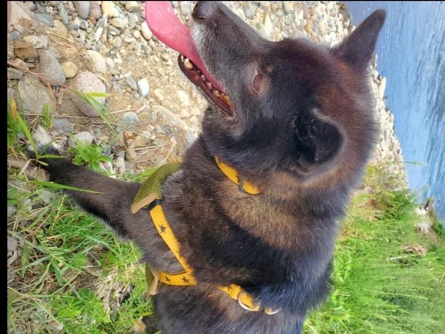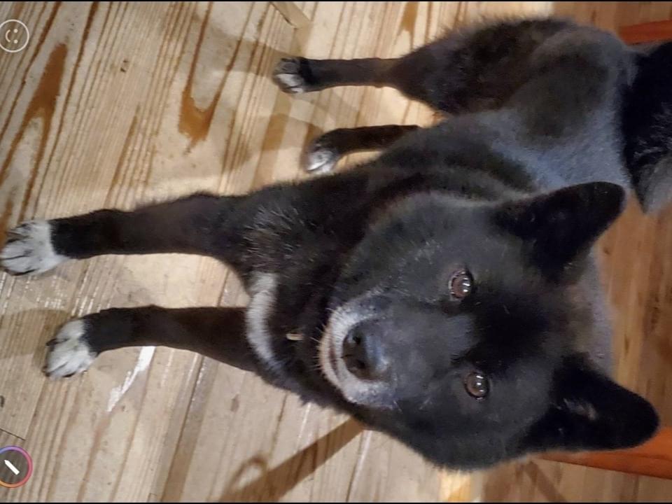 8月26日夕立の中脱走、黄色地に黒星柄の首輪をしています。黒いミックス中型犬で、口先、胸元、足先が白色です。人なつこくて、めったに吠えません。6年前の夏に脱走し、高崎市中島町で発見した経緯があります。