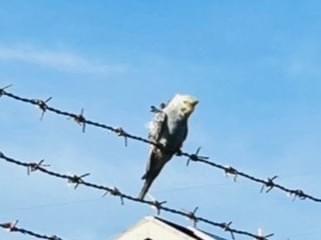 ・顔が黄色っぽく、体は白とグレーっぽいブルー