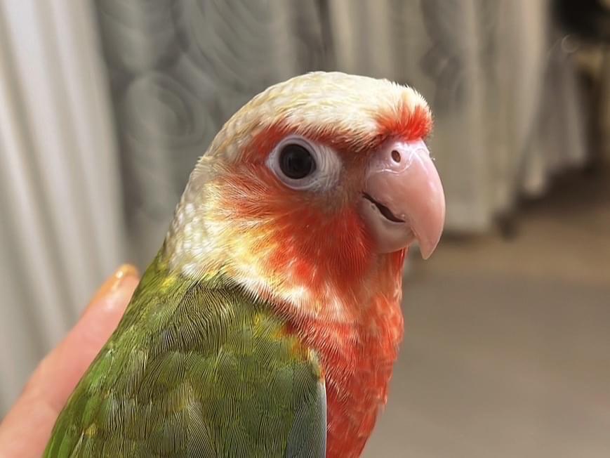 ☆緑、赤が目立つレッドパイナップルのウロコインコです。