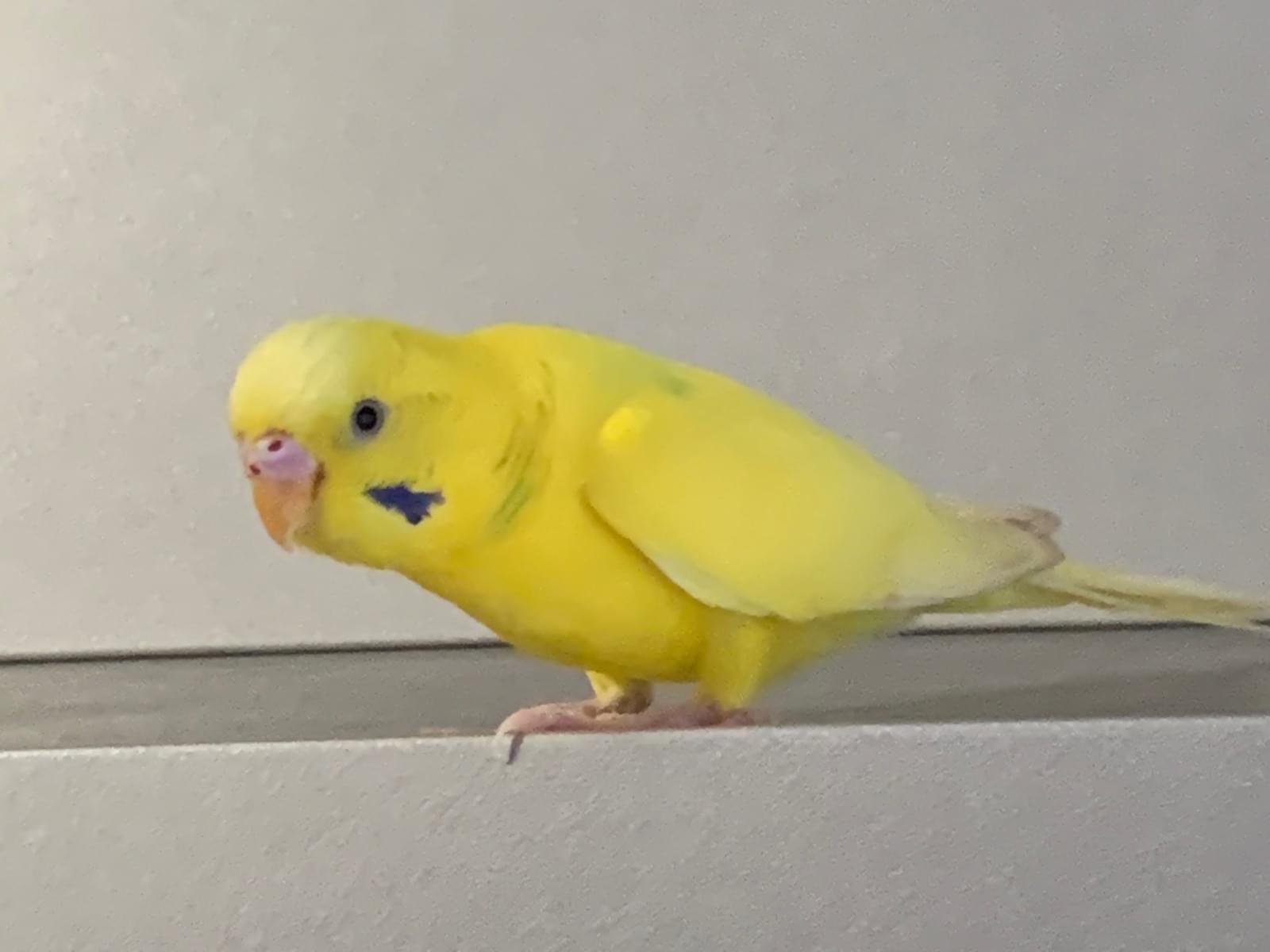 おしゃべりはしませんが、可愛い声で鳴いています。右の頬が白色で左の頬が青紫色です。背中に緑色の模様があります。