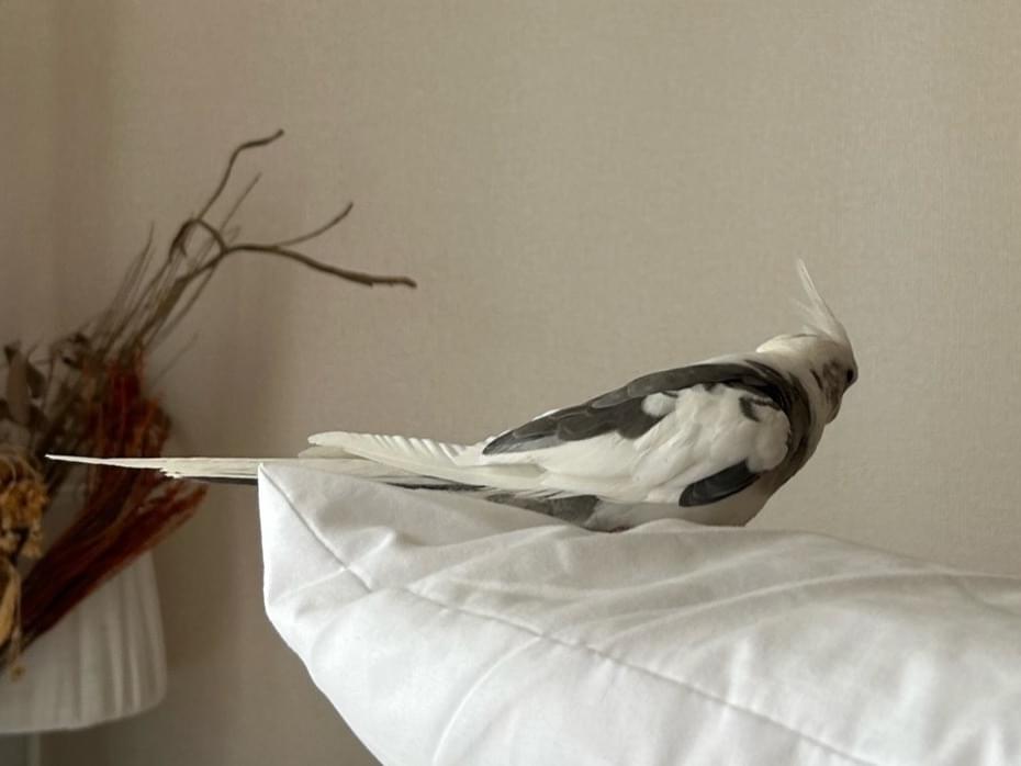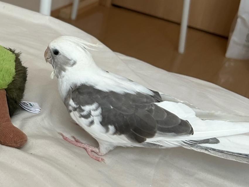 白ベースにグレー模様のオカメインコを探しています。