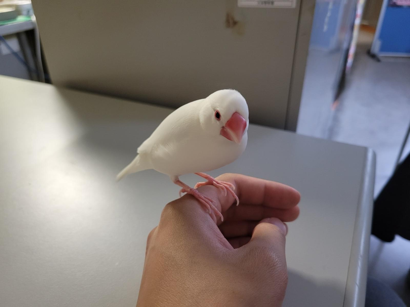 尾の付け根辺りがほんのり黒い以外、全身真っ白のきれいな子でした。