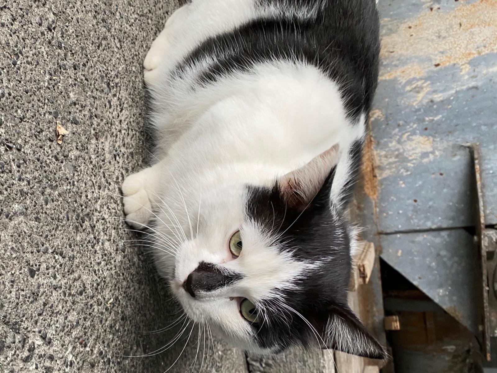 職場に来ていた野良猫なのですが、いつも会う人にはとても慣れていました。ビビりなので音に敏感ですぐに隠れてしまいます。