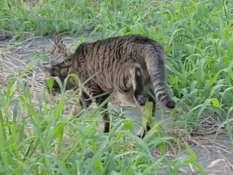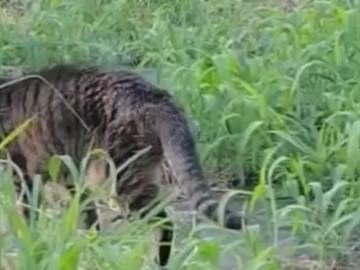 2023.8.10, 16:30 珍しく涼しい夕方。 緑地でトイレをしていました。近くで撮影しても逃げず、しばらくしてゆったりと緑地内に移動して行きました。