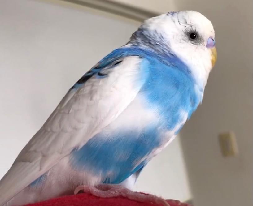 青と白のセキセイインコ。