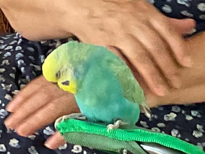 ニロちゃん かわいい 待っててね とおしゃべりします。かくれんぼが得意、人懐こくて誰の肩にも止まってきます。