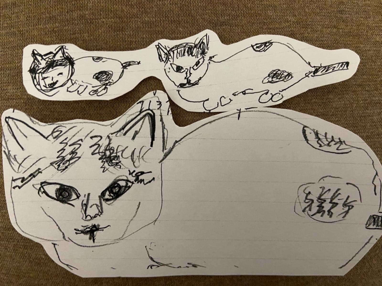 白地に頭背中お尻尻尾に黒とグレーの縦縞模様、去勢済み、飼い主以外人に懐かず、体重6㎏位、尻尾半分位短いです。ペパーミントグリーンとブルーの首輪です。