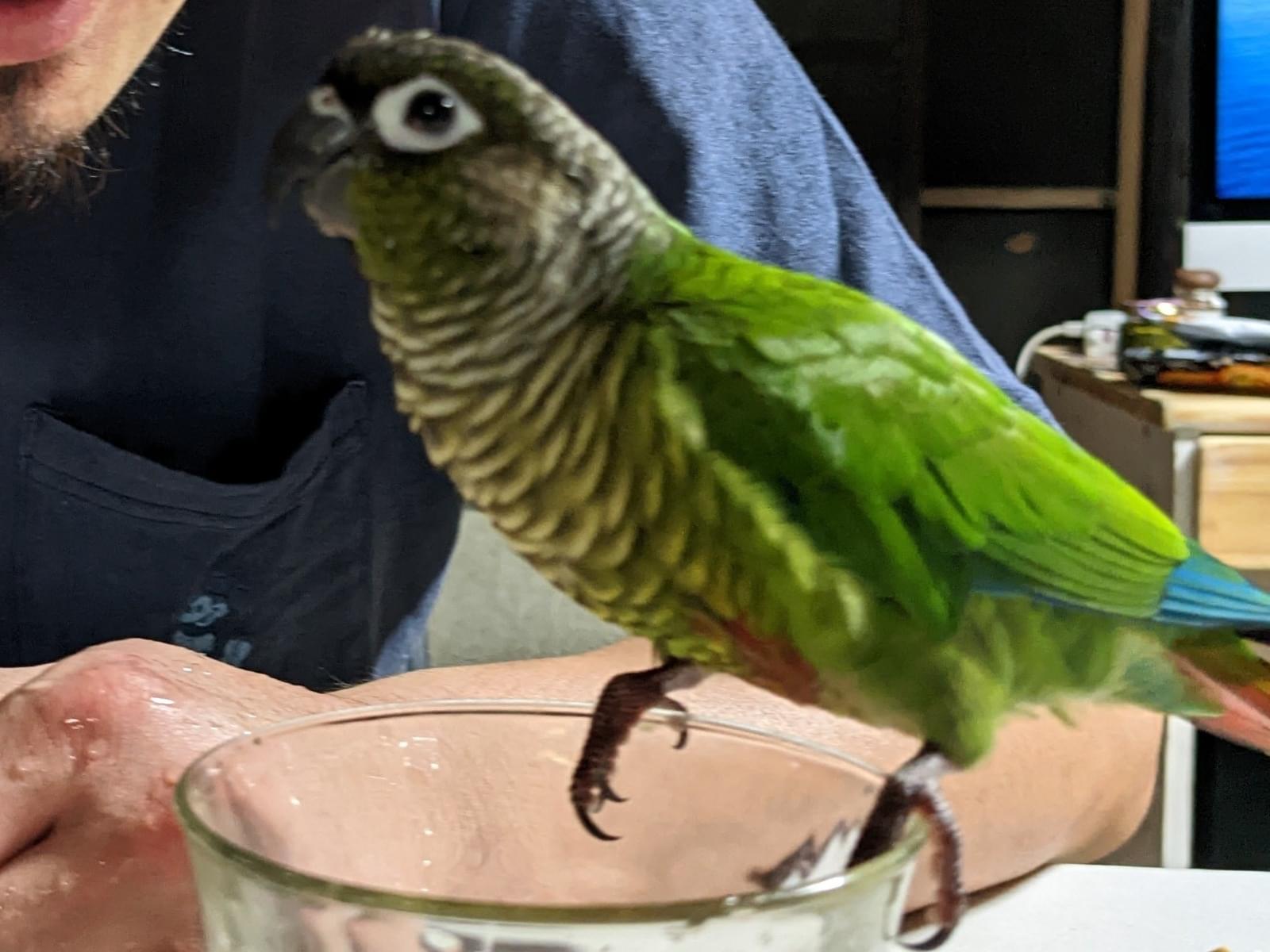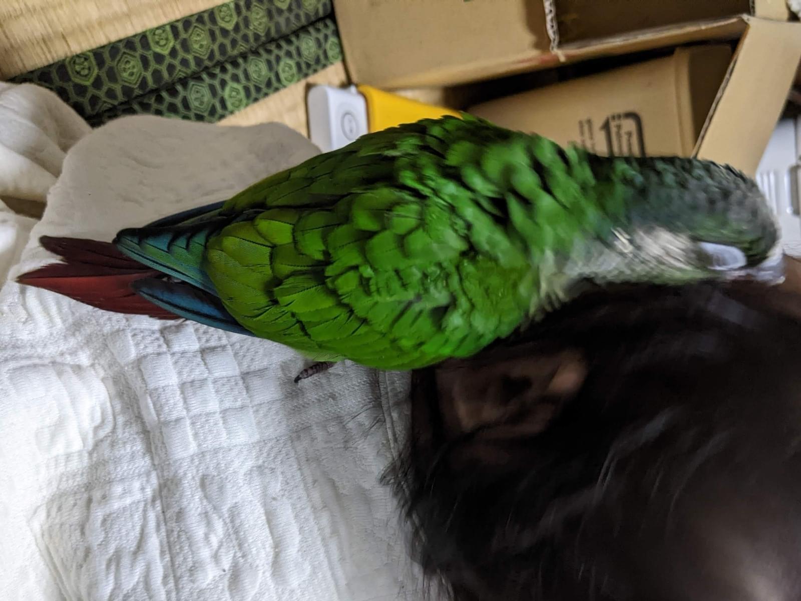 その他:噛む力は強いですが、好きな人には甘噛み程度です。最近オスの発情期の仕草を見せていました。羽は切っておらず、自由に飛べます。首輪や足輪はしていません。