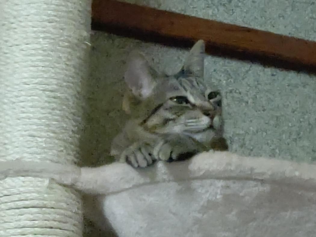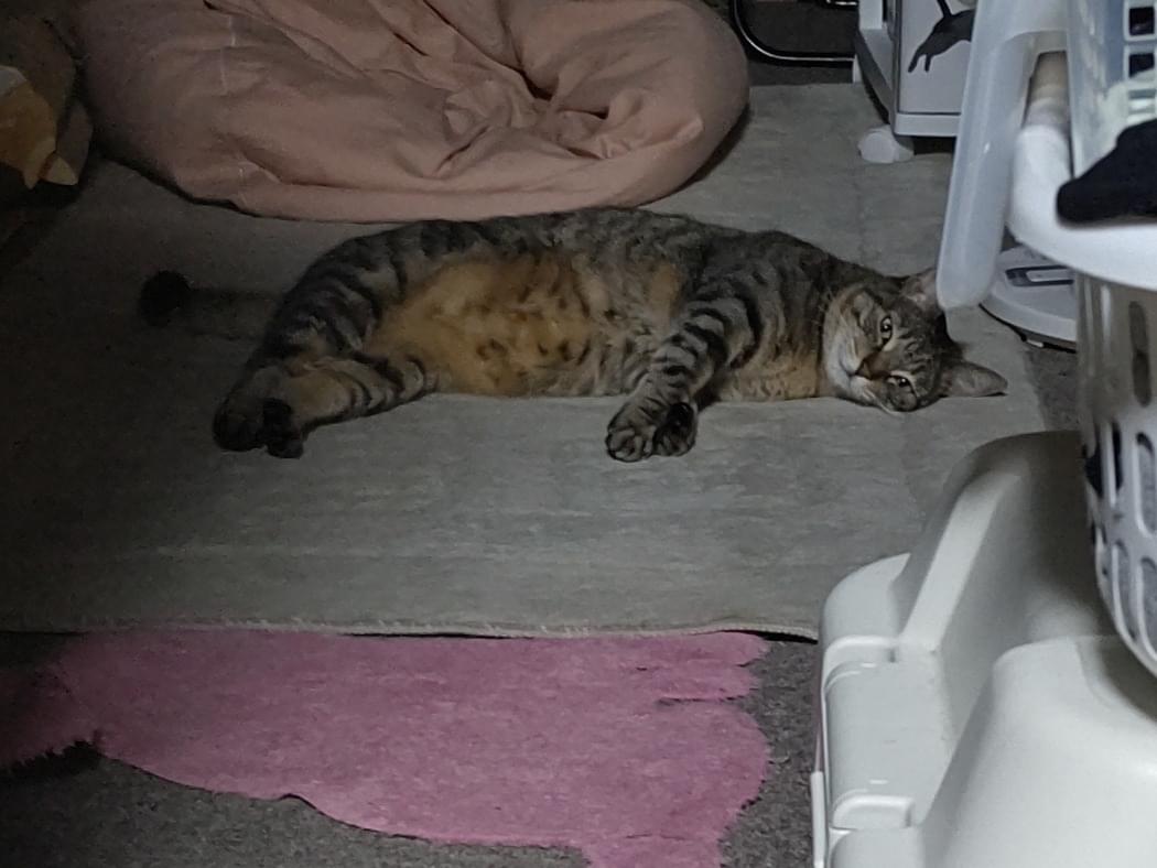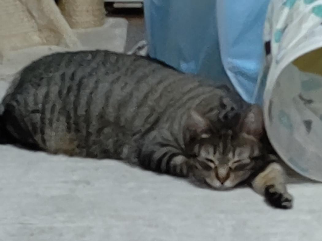 キジトラの女の子、避妊済 首輪無し 耳カット無し