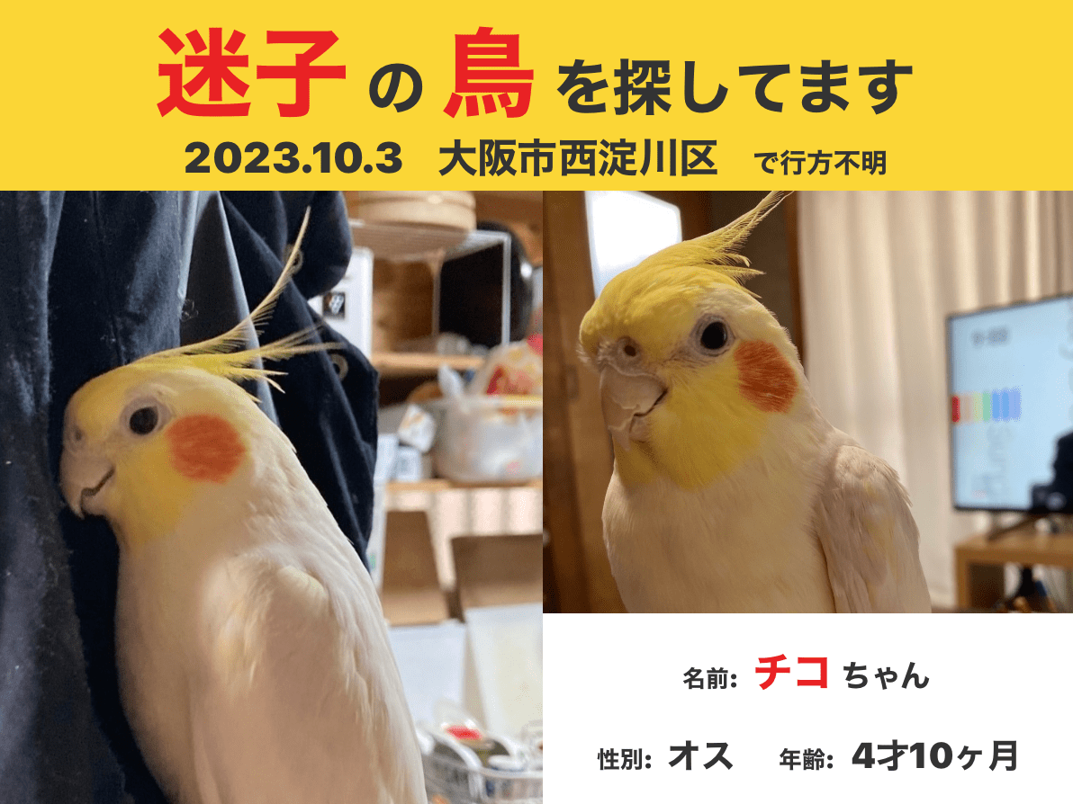 10月5日16時頃.高槻市でよく似た子を保護しました。