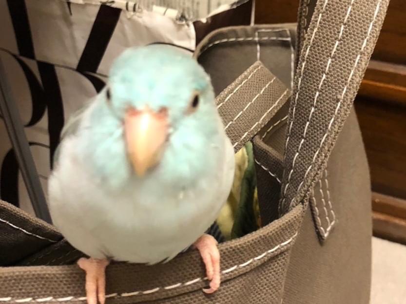 水色の体にピンクのクチバシのマメルリハが横浜市で迷子になりました。