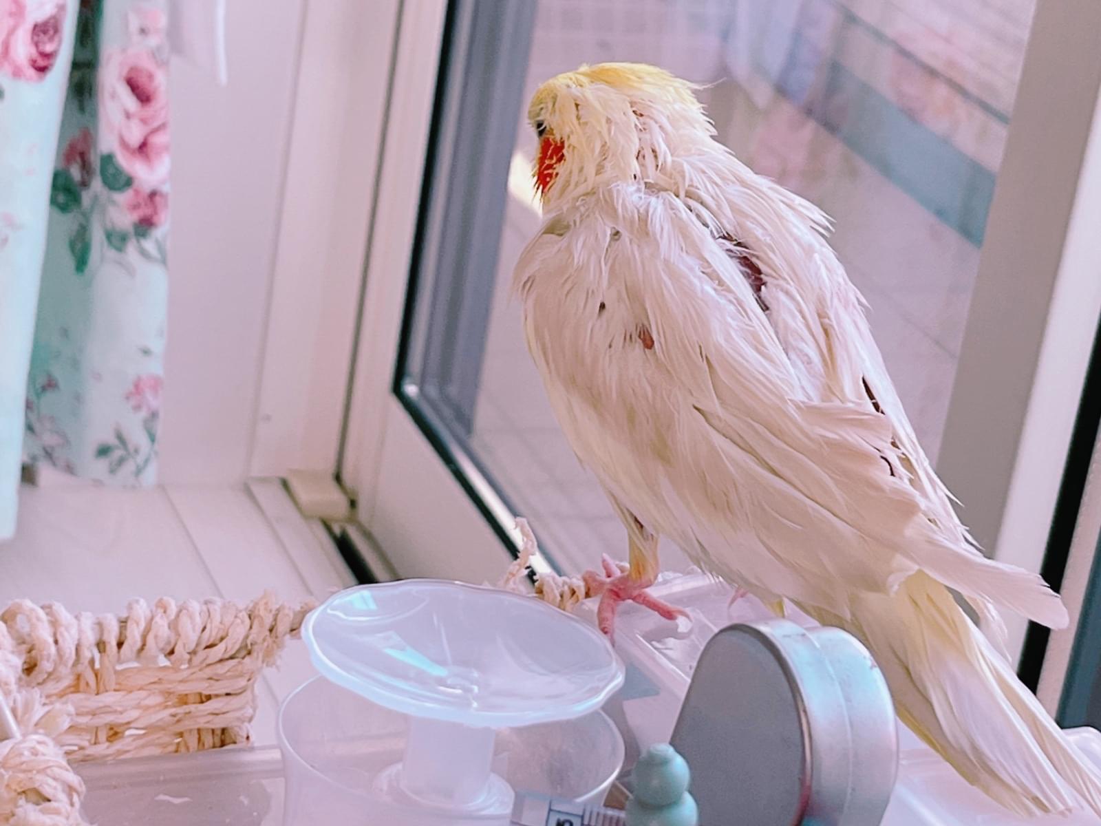 羽がハサミでぱつんと切っているので、ぱつんと切ったやや不恰好なかんじです。