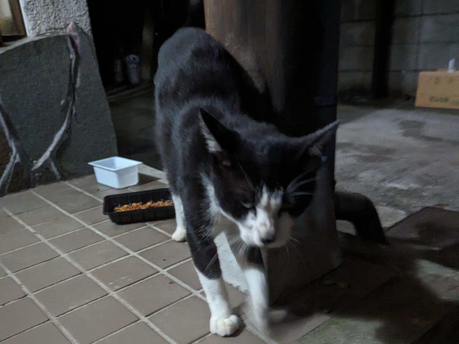 半年くらい前、家の近所で見るようになり、2〜3週間くらい前からガリガリで現れ、2週間前くらいからは庭で眠るようになりました。ご飯あげてます。