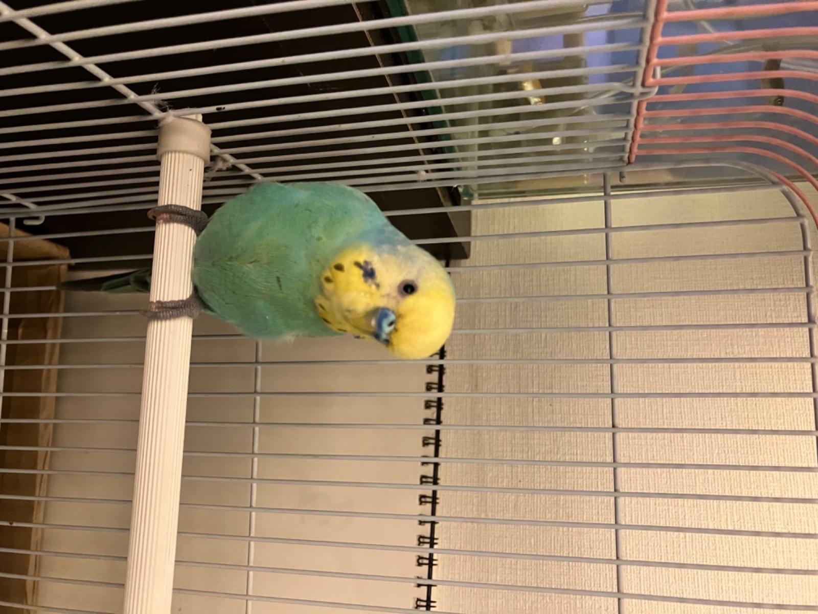 頭が黄色、体がエメラルドグリーン、鼻が青のセキセイインコがいなくなりました。