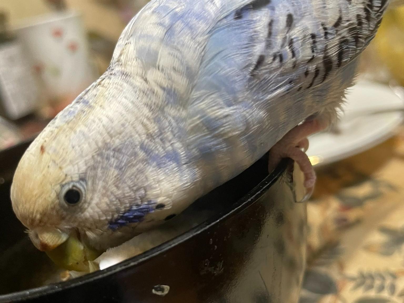 特徴 胸の青色がさざなみ柄です。自分の名前を喋れます。