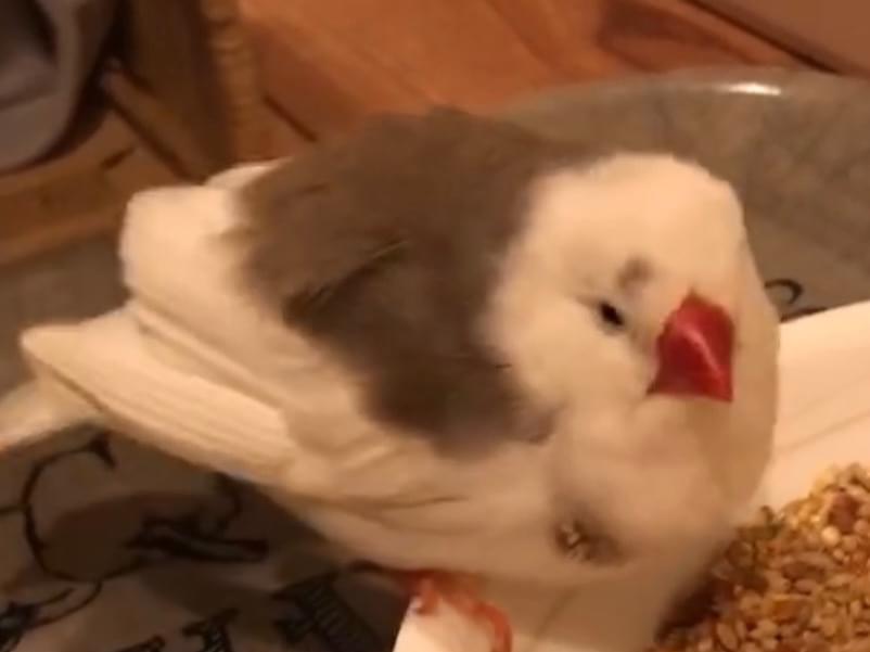 白とグレーの特徴的なキンカチョウです。(現在警察署で保護)
