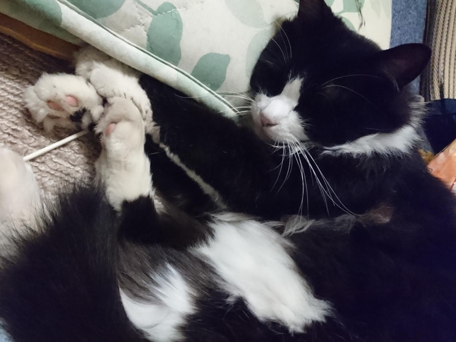 夜息子が外で喧嘩している越えを聞いたそうです。こわくて何処かに行ってしまったかもしれません。黒白のハチワレ長毛種です。尻尾も黒いです