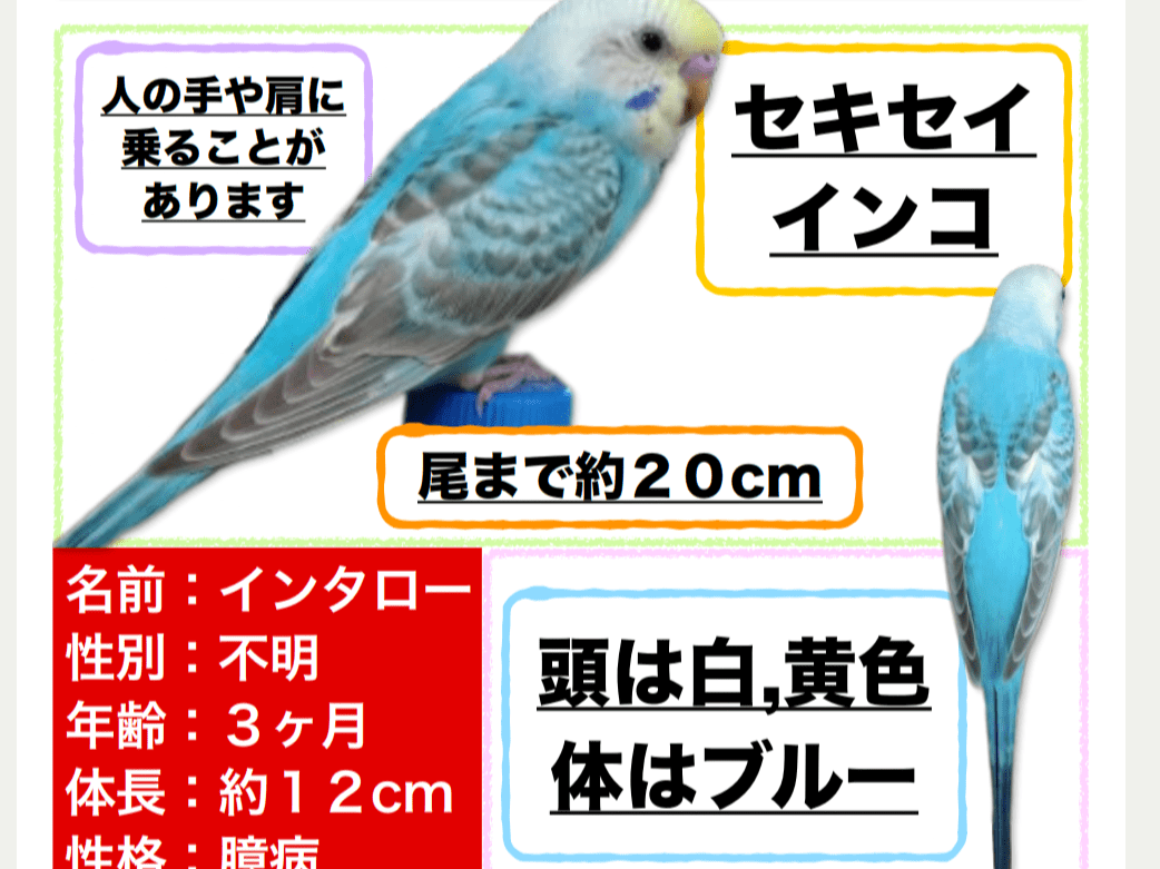 ホーム迷子鳥千葉県セキセイインコのレイ…セキセイインコのレインボー管理編集するポスター掲載終了最終更新日時:2023/10/19 17:11写真動画情報用件迷子名前インタロー性別不明年齢3ヶ月場所千葉県 市原市青柳発生日時2023年10月18日(水)飼い主はな説明まだ上手く喋れません。手乗りはします。 触られるのが苦手です。連絡先URL未設定掲示板情報交換のための掲示板です。ユーザーからの情報提供、オーナーからの連絡などにご利用下さいませ。書き込んだ情報は、オーナーのメールに通知されます。まだコメントはありません。トピックを作成する