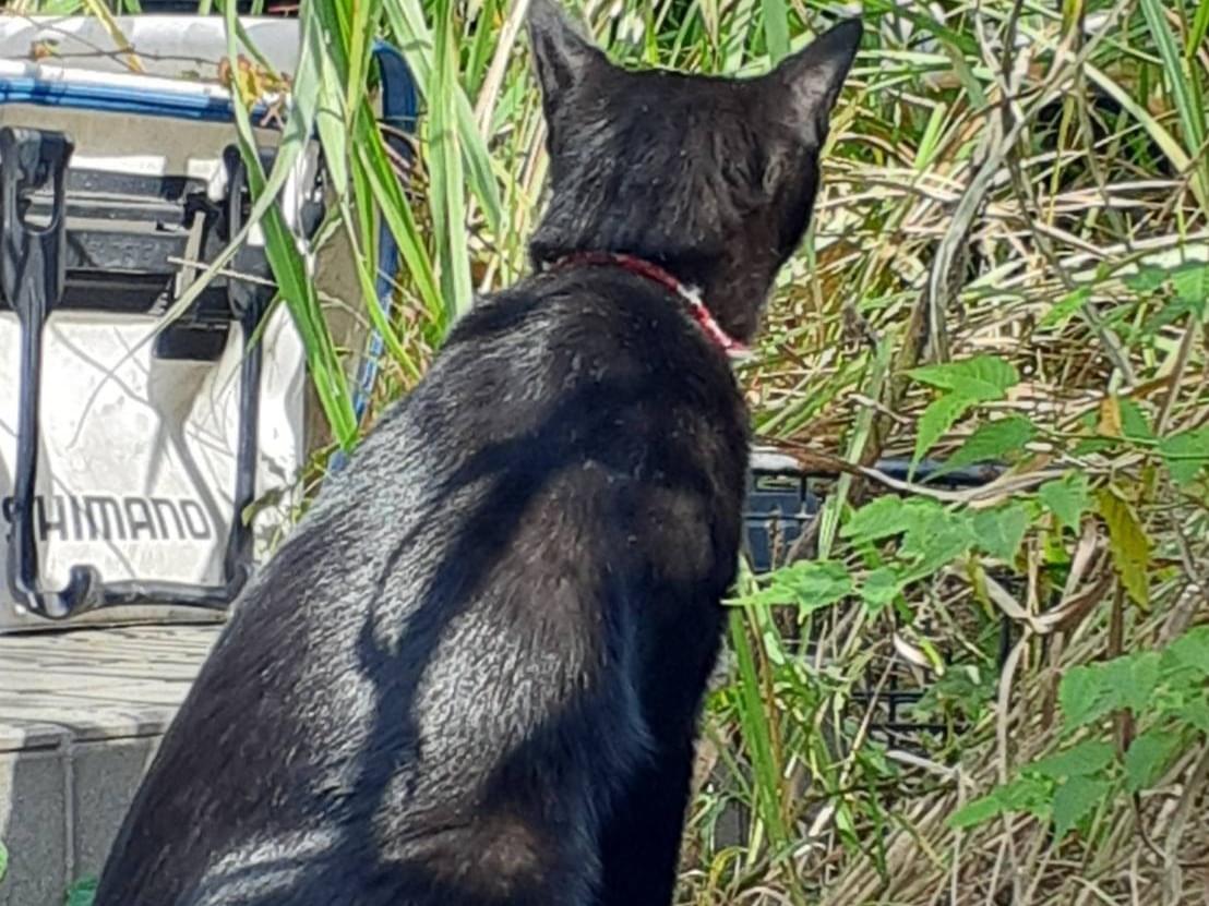 しっぽの短い黒猫・細くて赤い首輪をしている猫を目撃