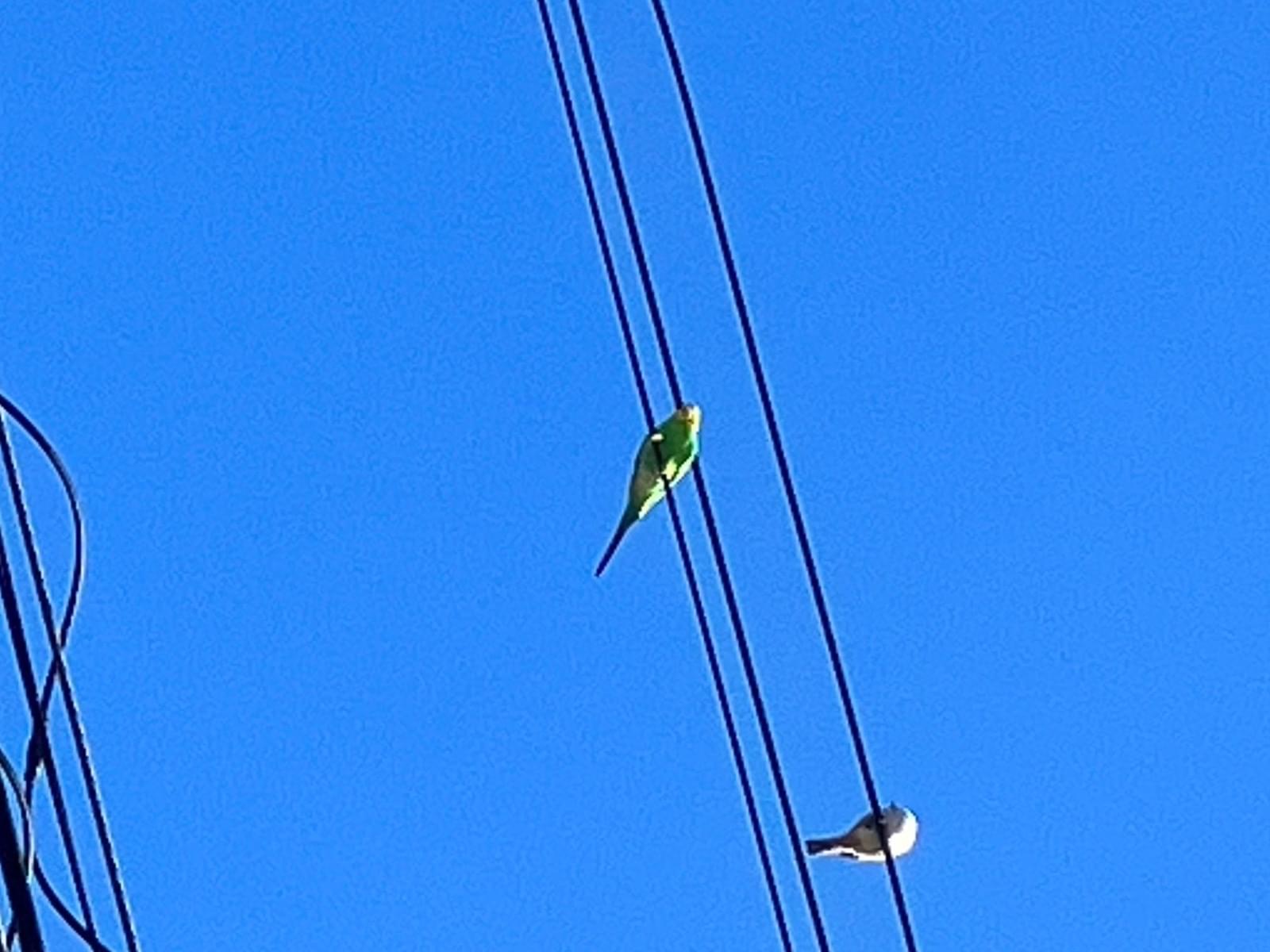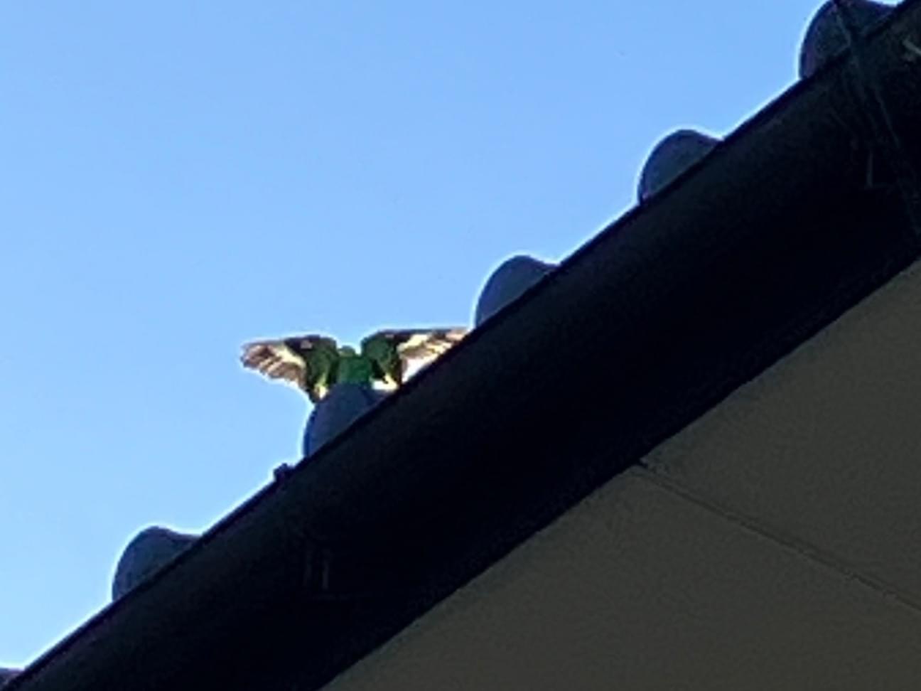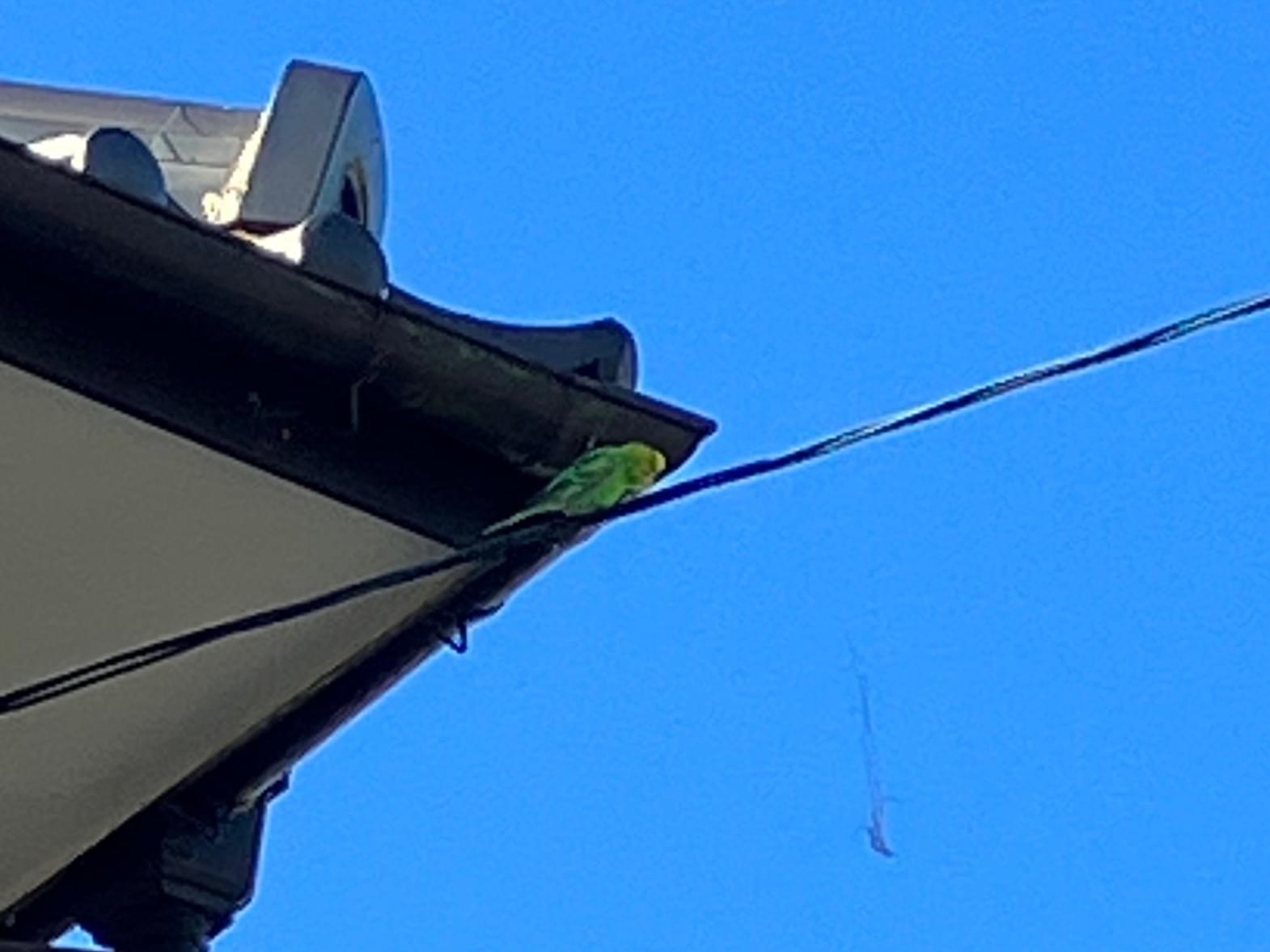 人慣れしていないのか野生化しているのか呼んでも来ず、木の上や電線、屋根から降りて来ることはありません。