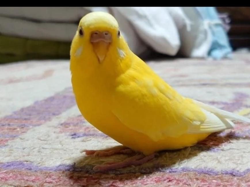 ルチノー(黄色)目が赤いです。頬は白いです。雀に反応してキロロローと鳴きます