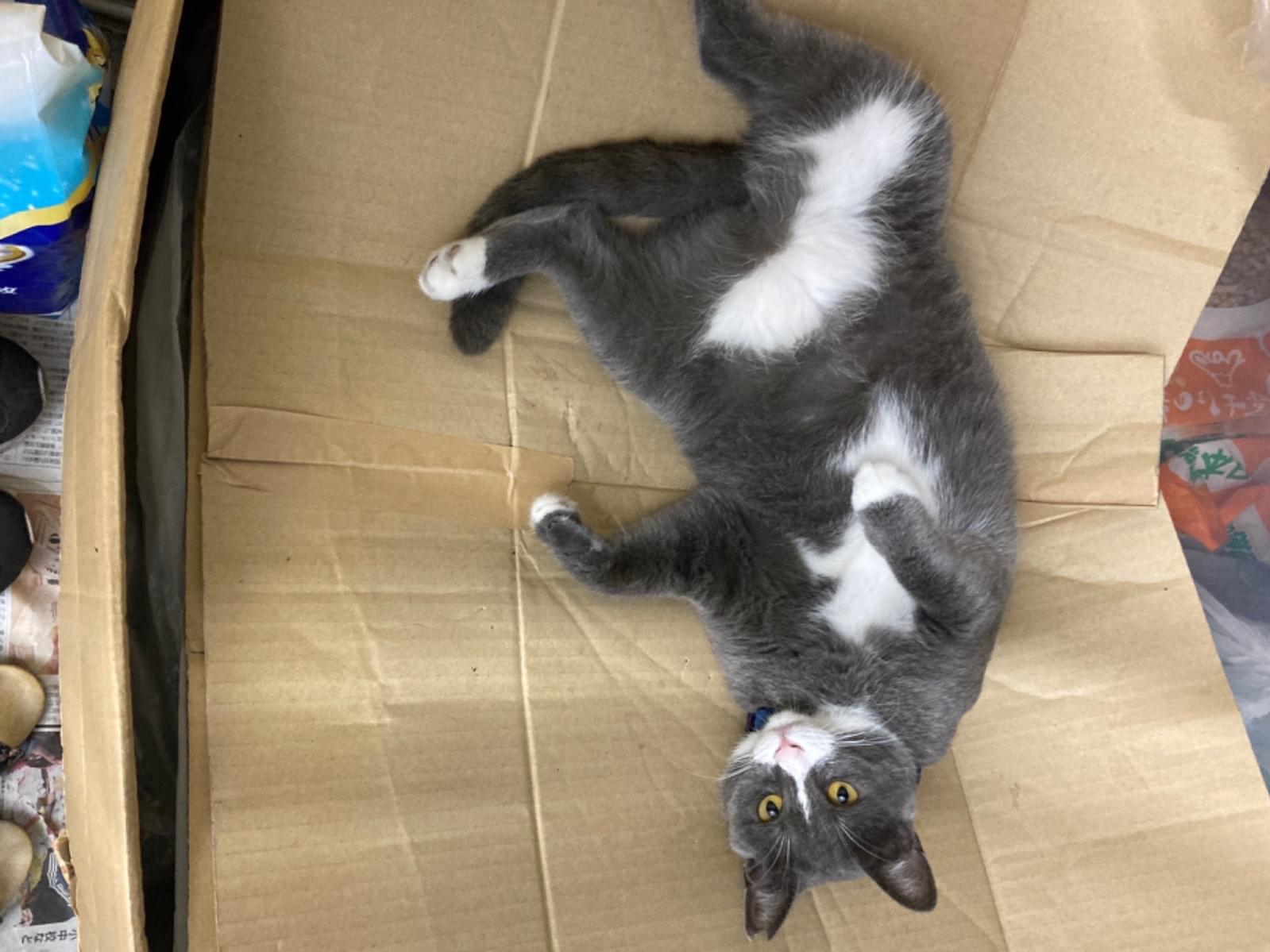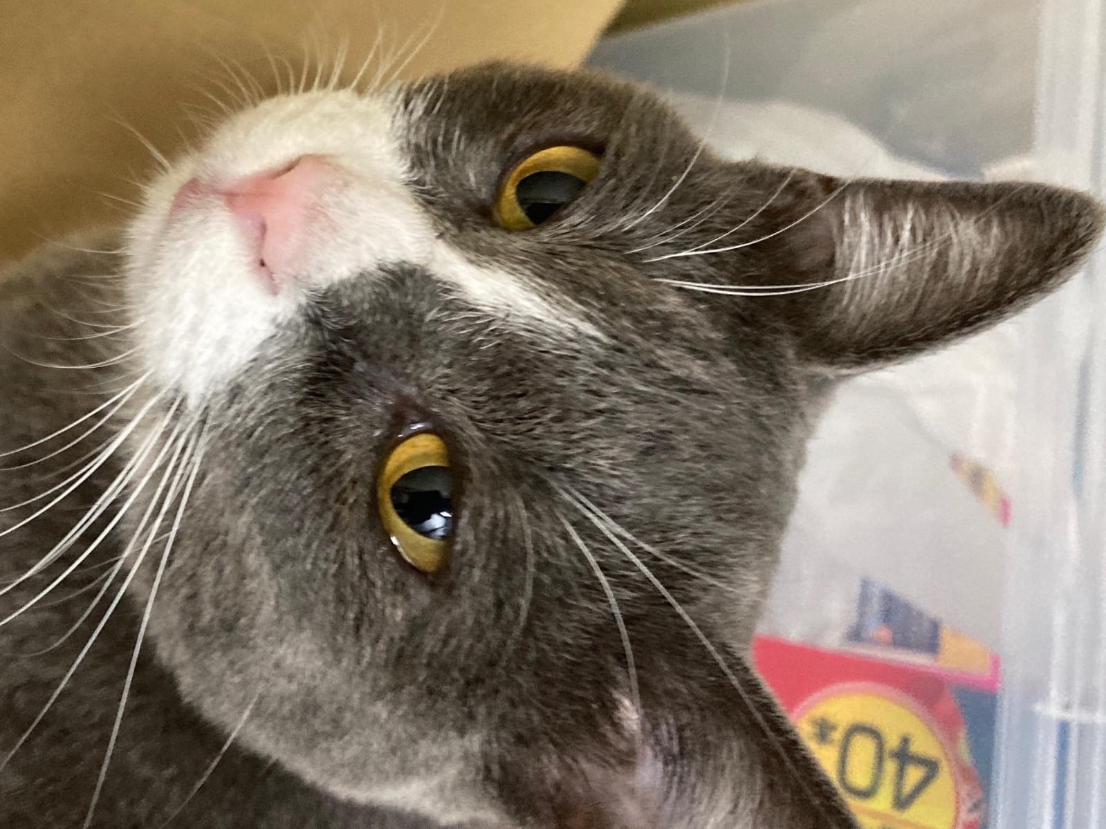 グレーの猫,足は白 目は黄色 メス(避妊済)