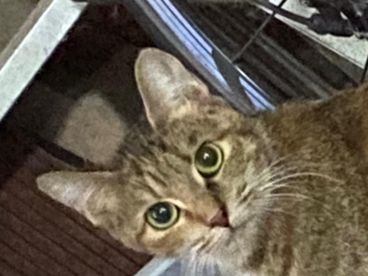 ブラウンのシマ模様でガリガリではないけどスラっとしてる猫ちゃんです。