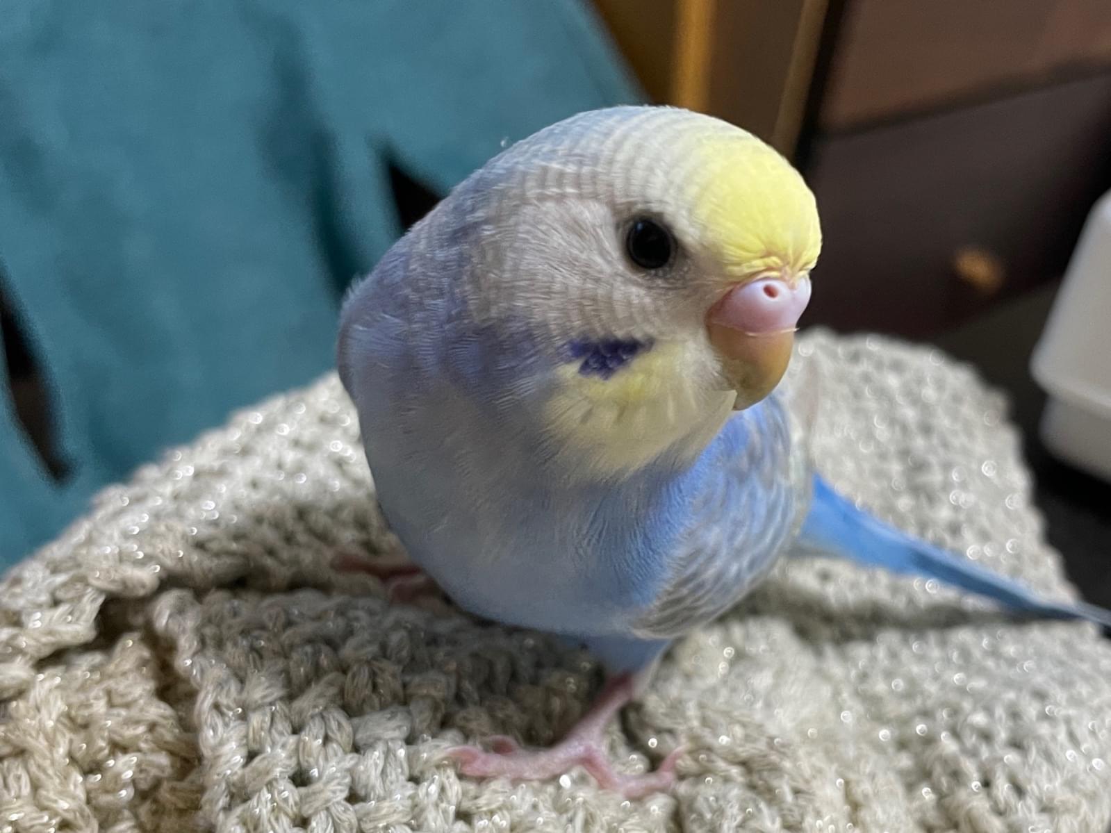 言葉は話しませんが、人懐っこい性格で手乗り肩乗りです。