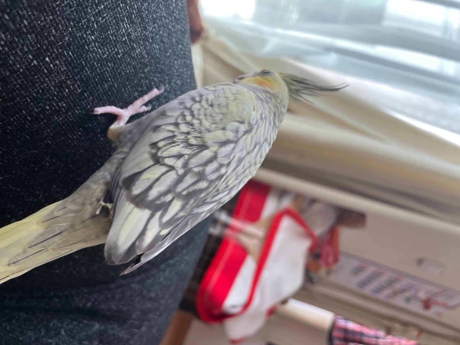 羽が数枚伸びているので、飛んでどこかへ行っていると思います。尾っぽの先が少し汚れています。