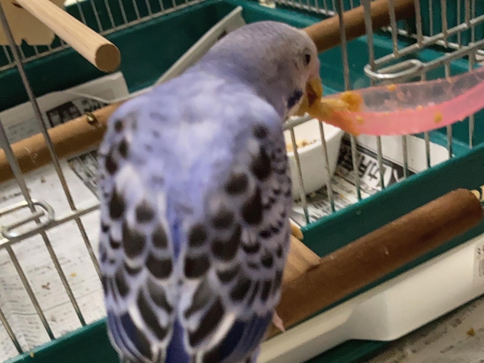 不注意で逃してしまいました。羽が生え揃ってなく尻尾があまり長くありません。鼻の色がうっすら水色に変わり始めてるのでオスだと思います。