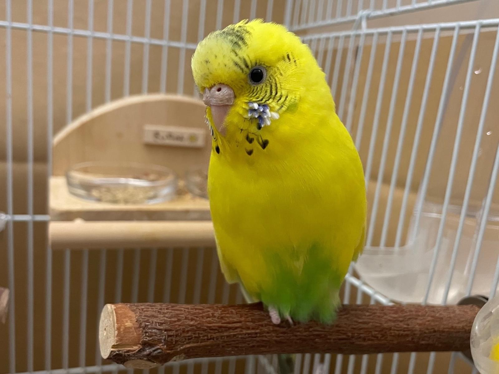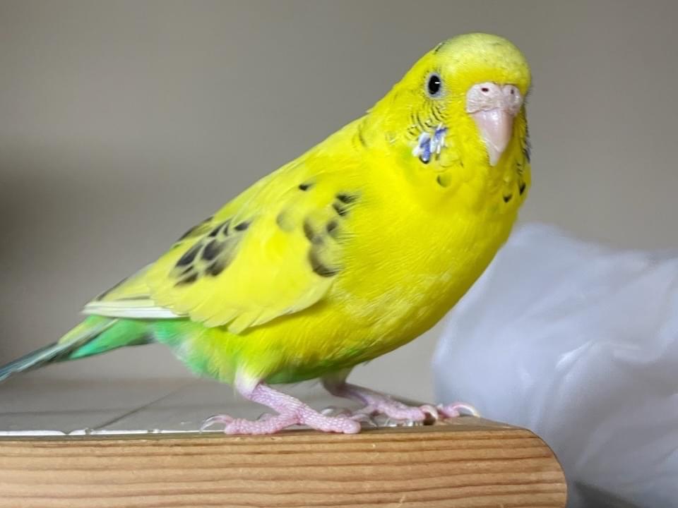 黄色に黒ぶち、お腹あたりからおしりは緑色。